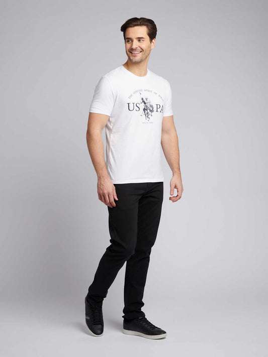 Mens Stripe Double Horsemen T-Shirt in Allure