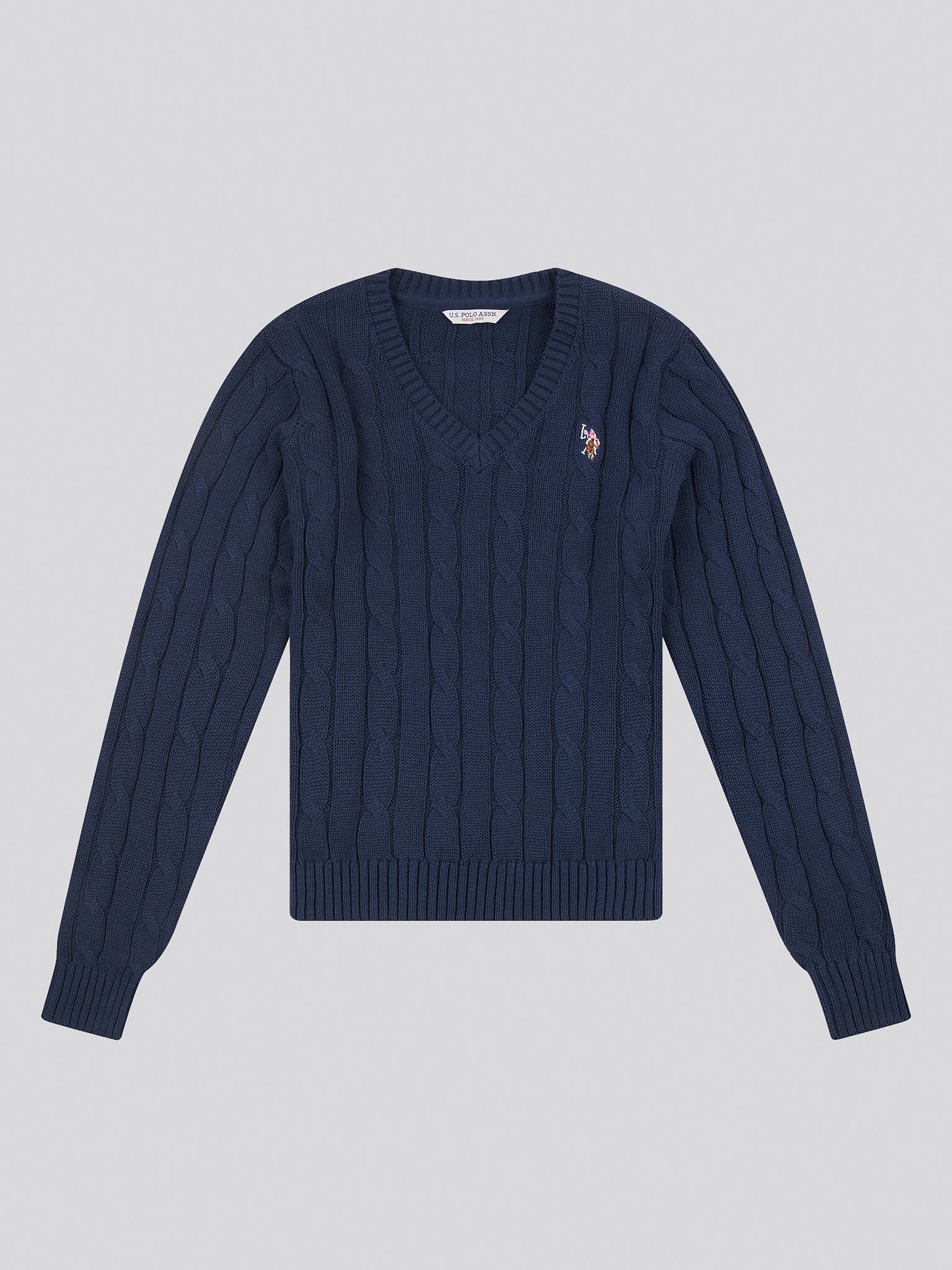 Perfect transitional dressing with the U.S. Polo Assn. Womens V-Neck Cable Knit Jumper.