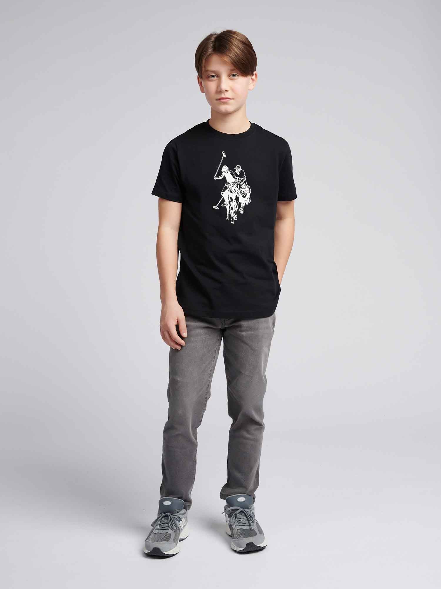 Infuse casual looks with timeless polo-inspired charm in this Boys Double Horsemen Graphic T-Shirt from U.S. Polo Assn. Ideal for laid-back outings, this tee pairs effortlessly with jeans or shorts for versatile everyday style.