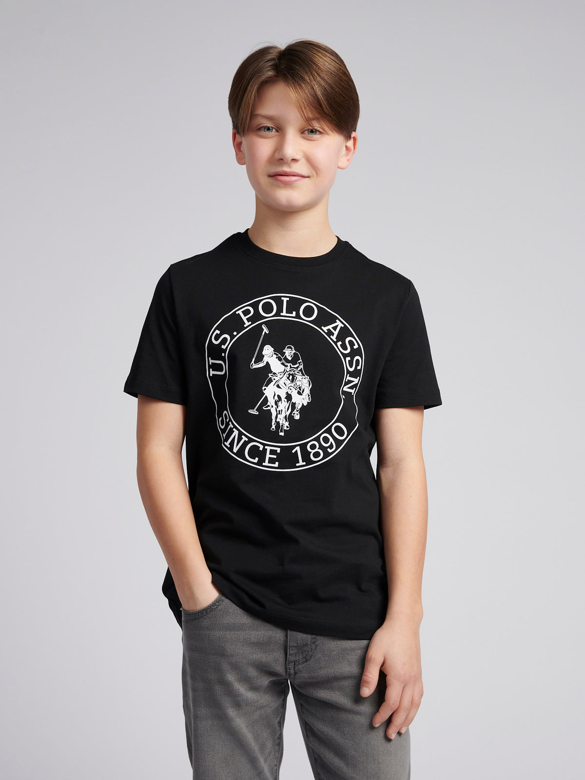 Boys Large Double Horsemen Graphic T-Shirt in Black