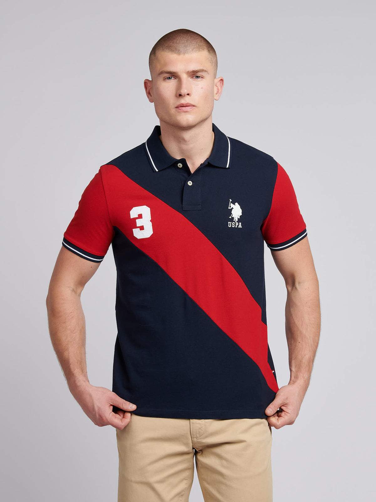 Mens Large Player Pique Polo Shirt in Dark Sapphire Navy / Haute Red DHM