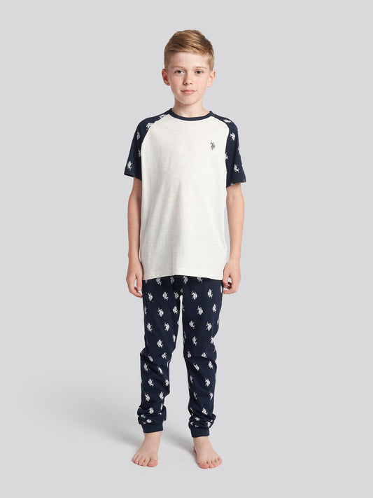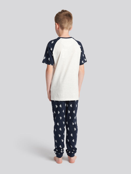 Boys Double Horsemen Polo Shirt in Navy Peony
