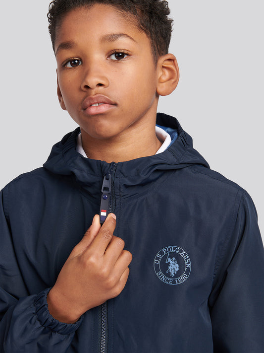 Boys Hooded Windbreaker in Dark Sapphire Navy