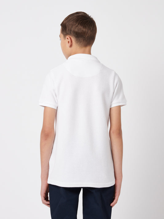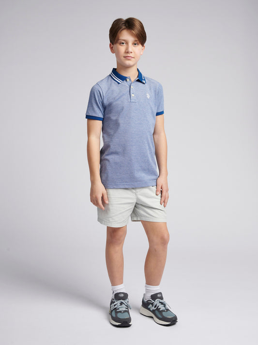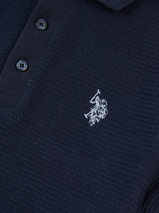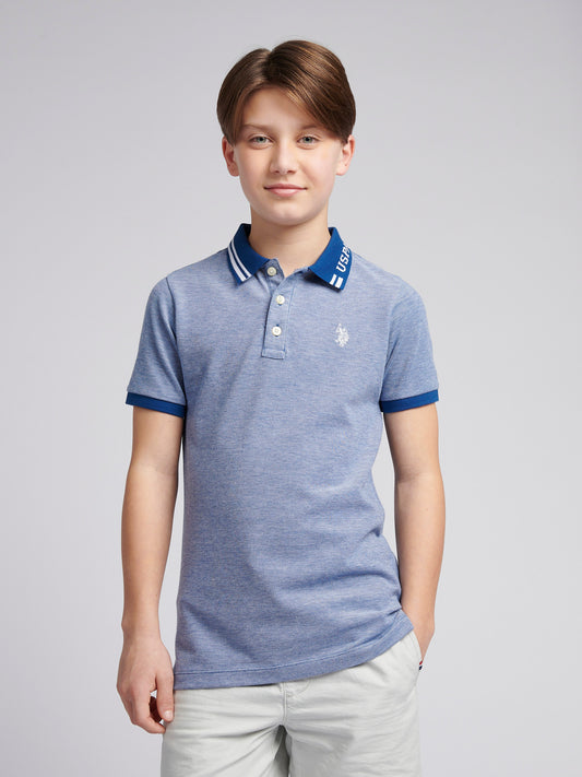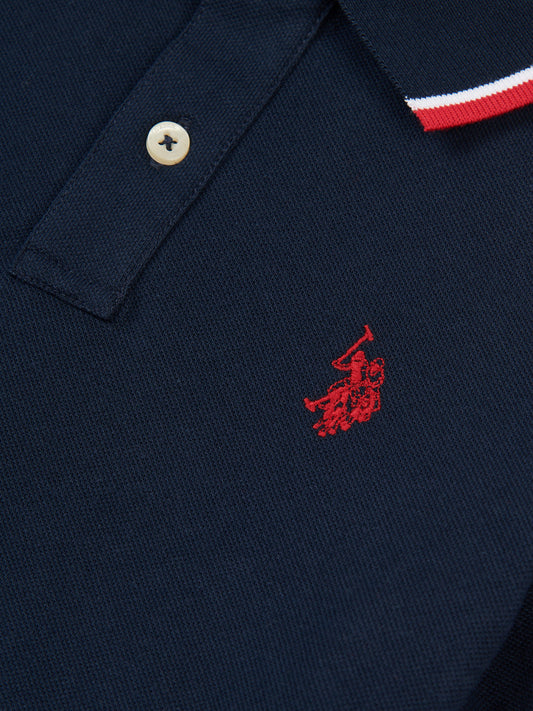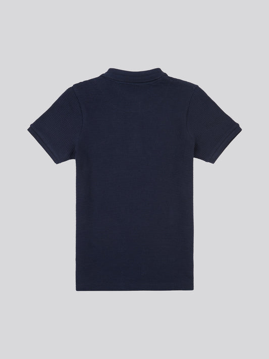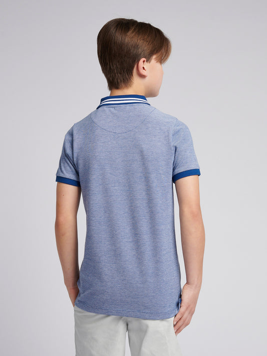 Boys Two Tone Pique Polo Shirt in Navy Peony