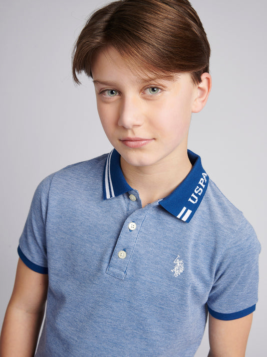 Boys Double Horsemen Polo Shirt in Pool Blue