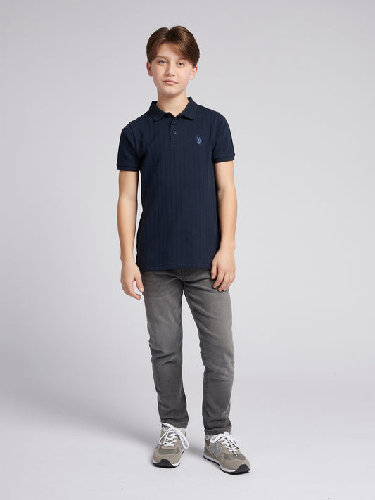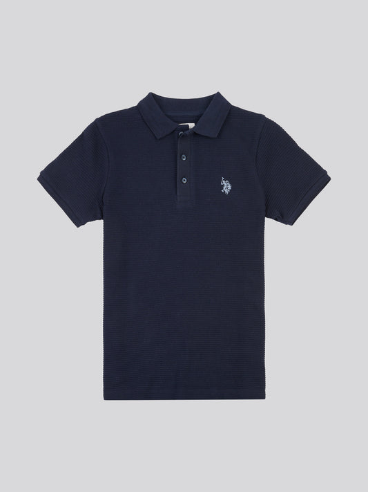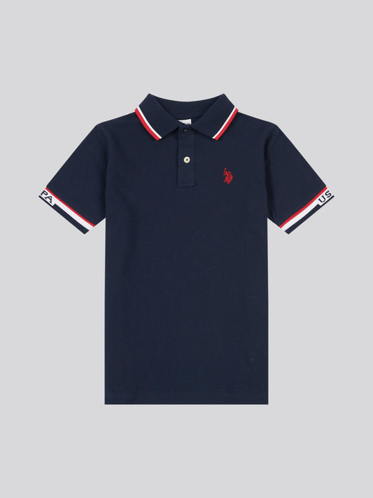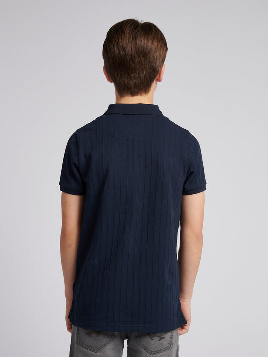Boys Brand Stripe Pique Polo Shirt in Dark Sapphire Navy