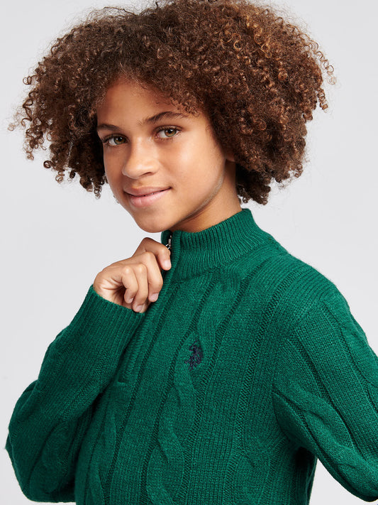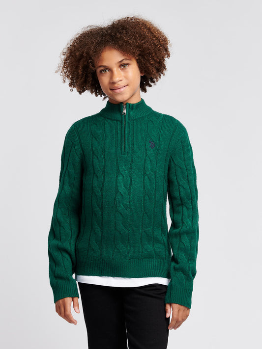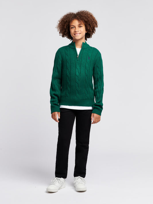 Boys Double Horsemen ¼ Zip in Iceberg Green