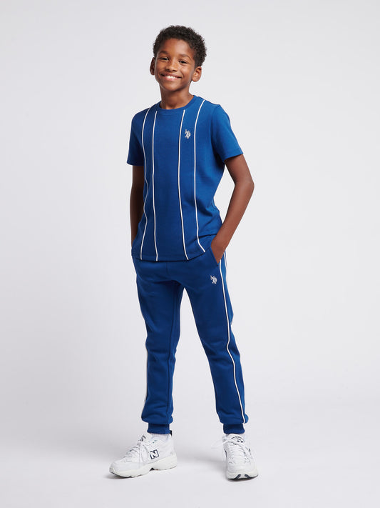 Boys Piped Interlock T-Shirt in Navy Peony