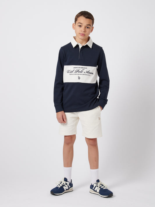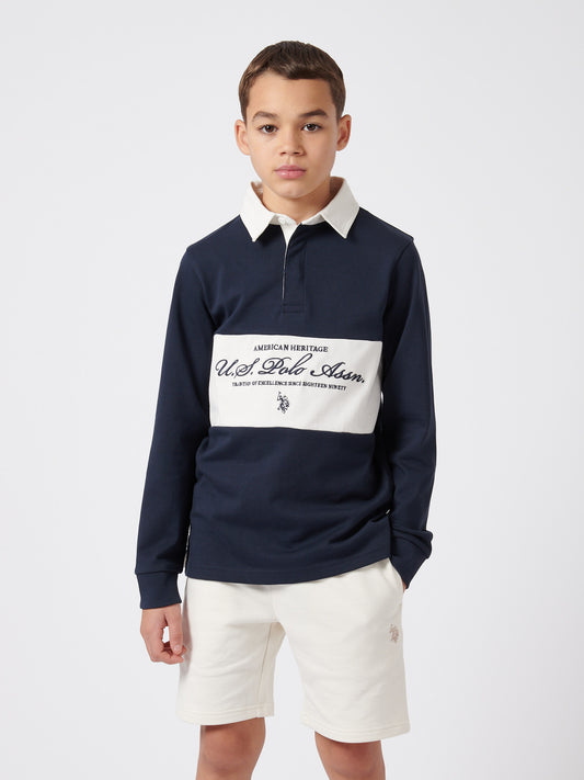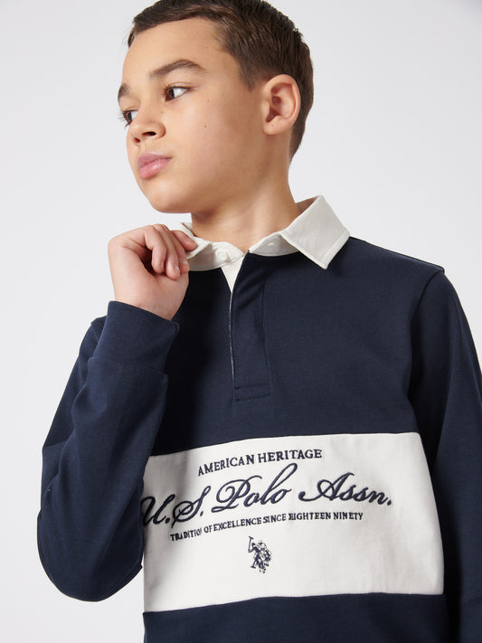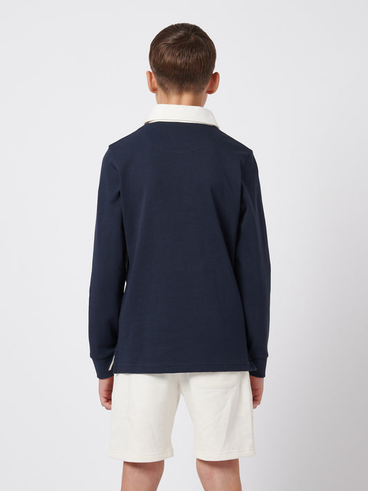 Boys Premium Embroidery Rugby Shirt in Dark Sapphire Navy