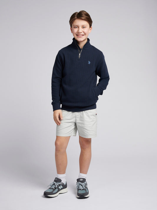 Boys Herringbone ¼ Zip Sweatshirt in Blue Horizon Marl