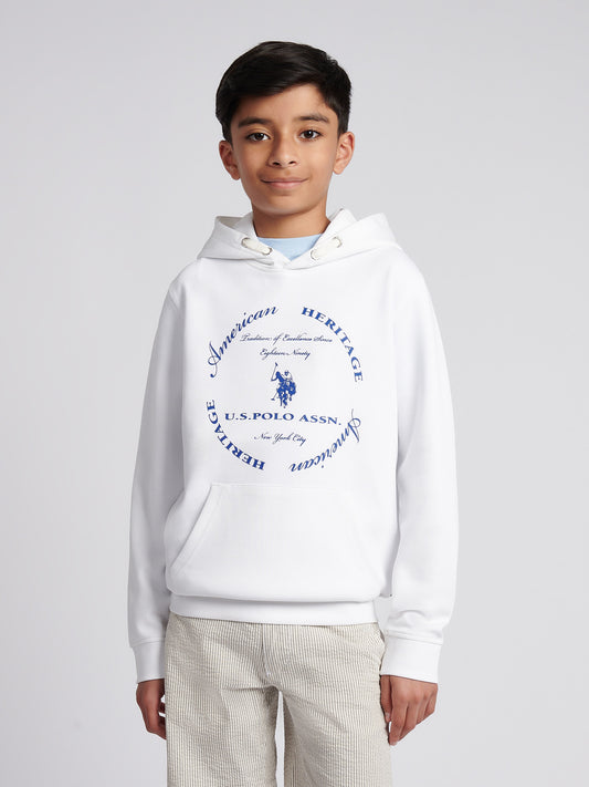 Boys Premium Print Interlock Hoodie in Bright White