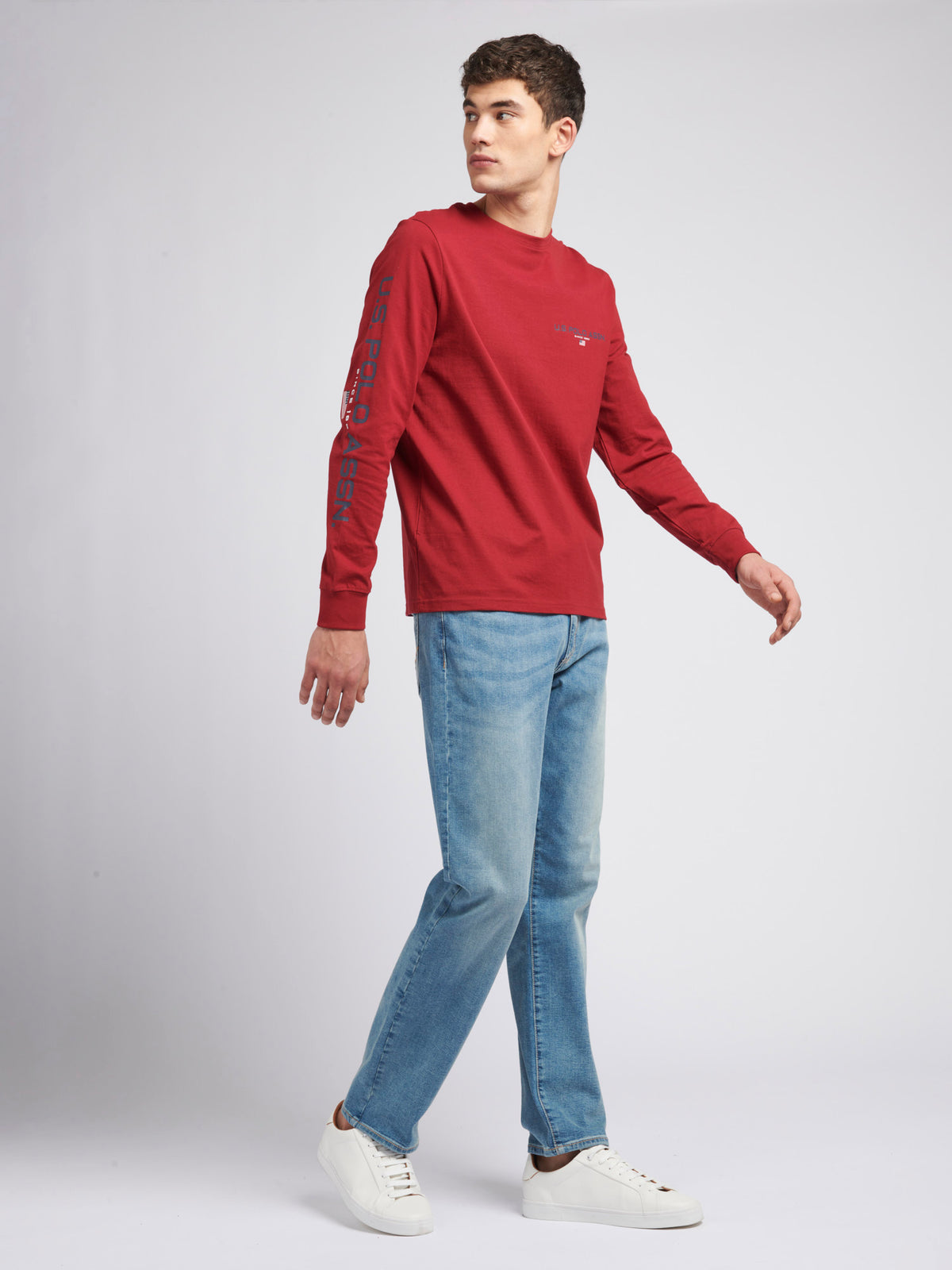 Mens Double Horsemen Pocket T-Shirt in Haute Red