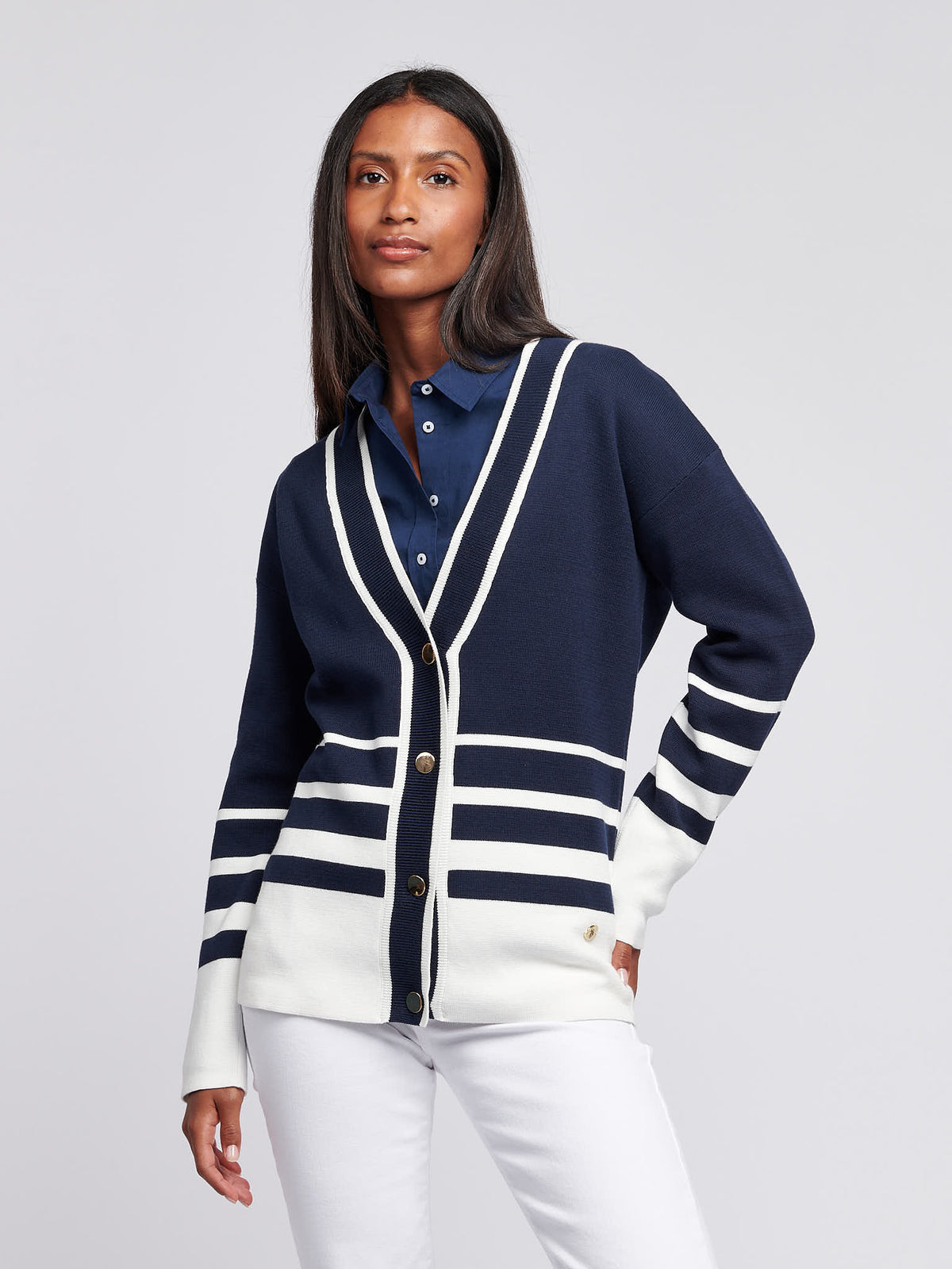 Regular price £19.50Regular priceUnit price / per£65.00Sale price £19.50GIFTING MADE EASY — DELIVERED IN TIME FOR CHRISTMASWomen Thin Stripe Cable Knit Jumper in Bright White1 COLOUR AVAILABLE