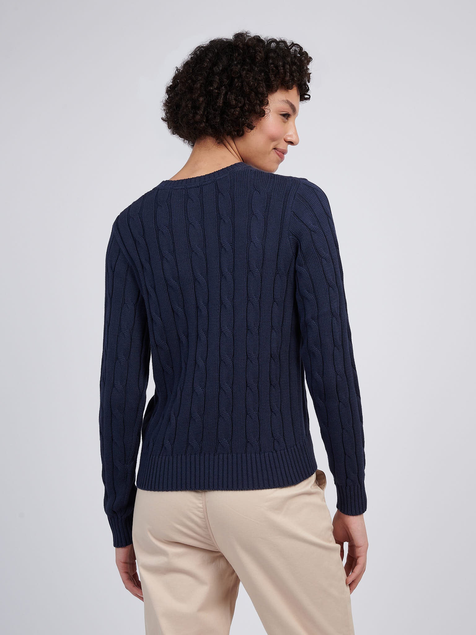 Womens Crew Neck Cable Jumper in Navy Iris