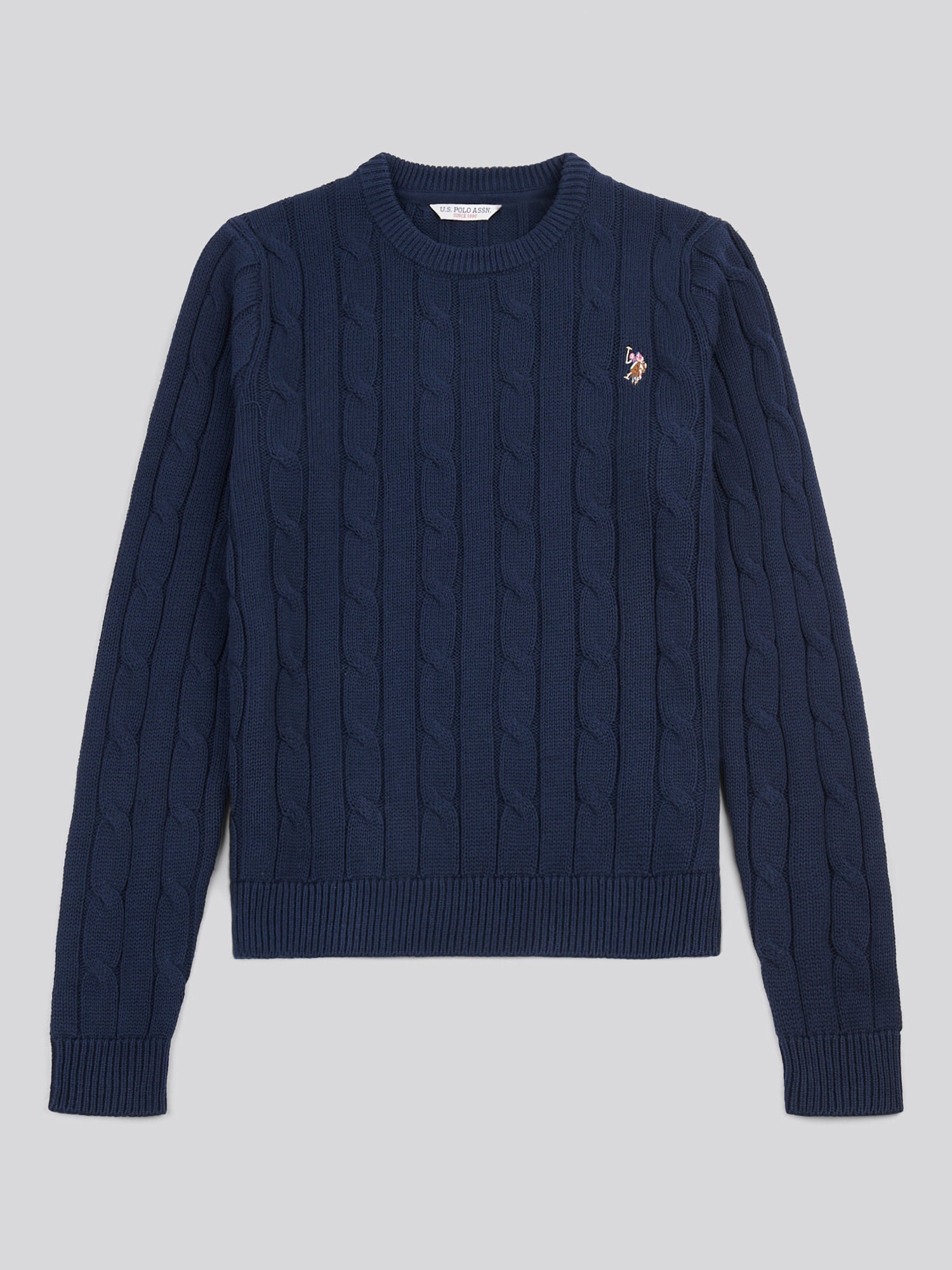 Perfect transitional dressing with the U.S. Polo Assn. Womens Crew Neck Cable Knit Jumper.