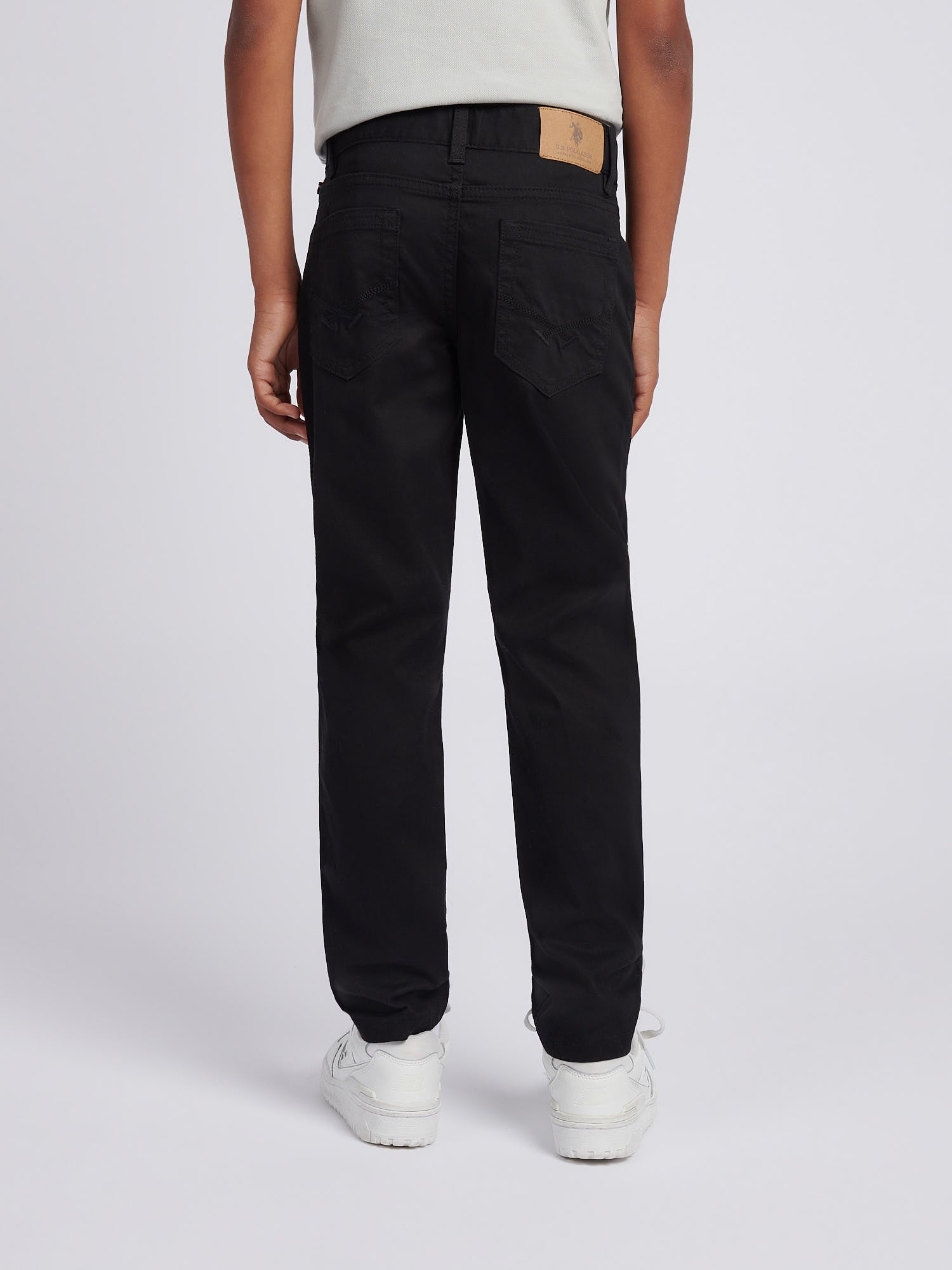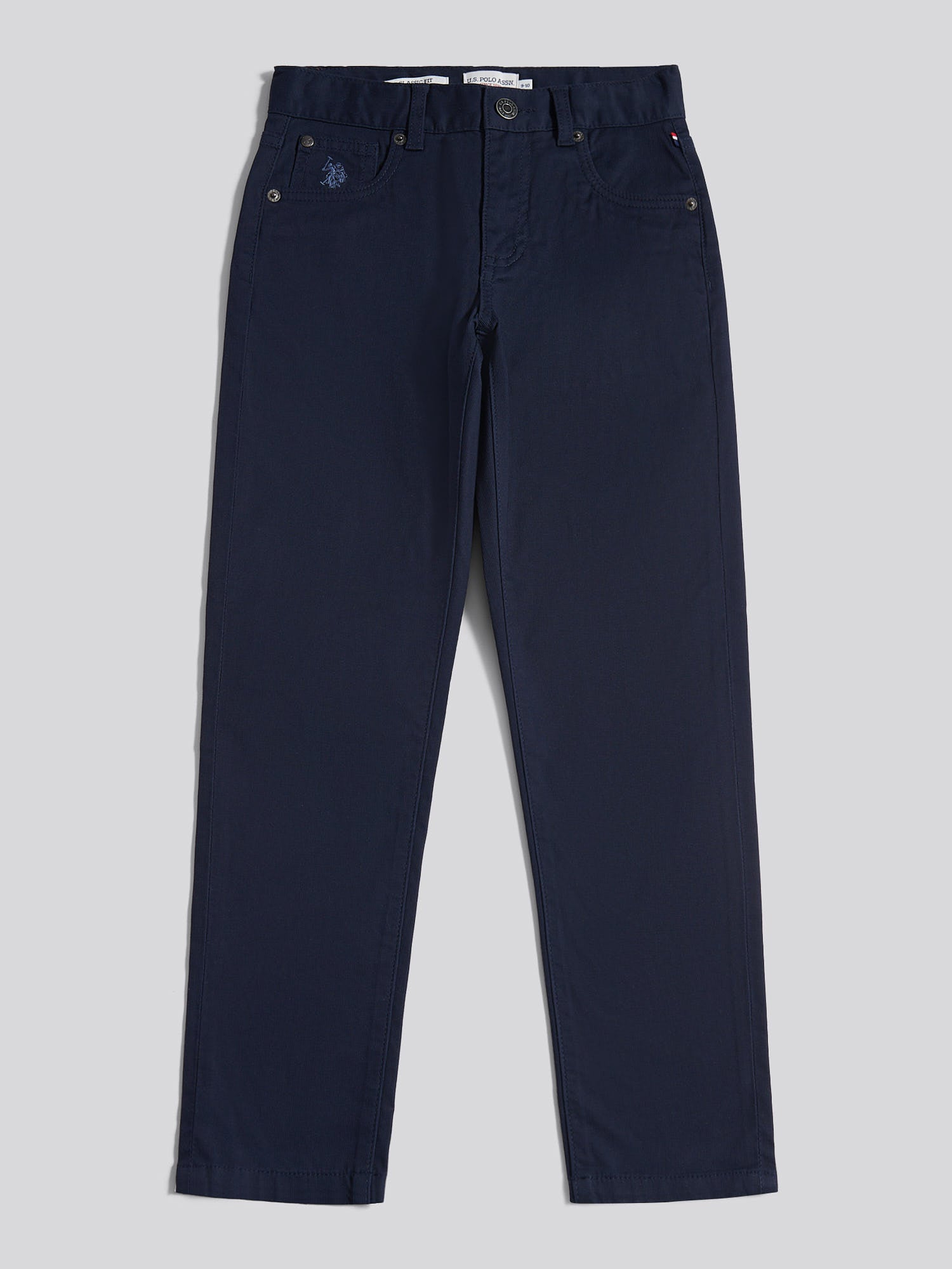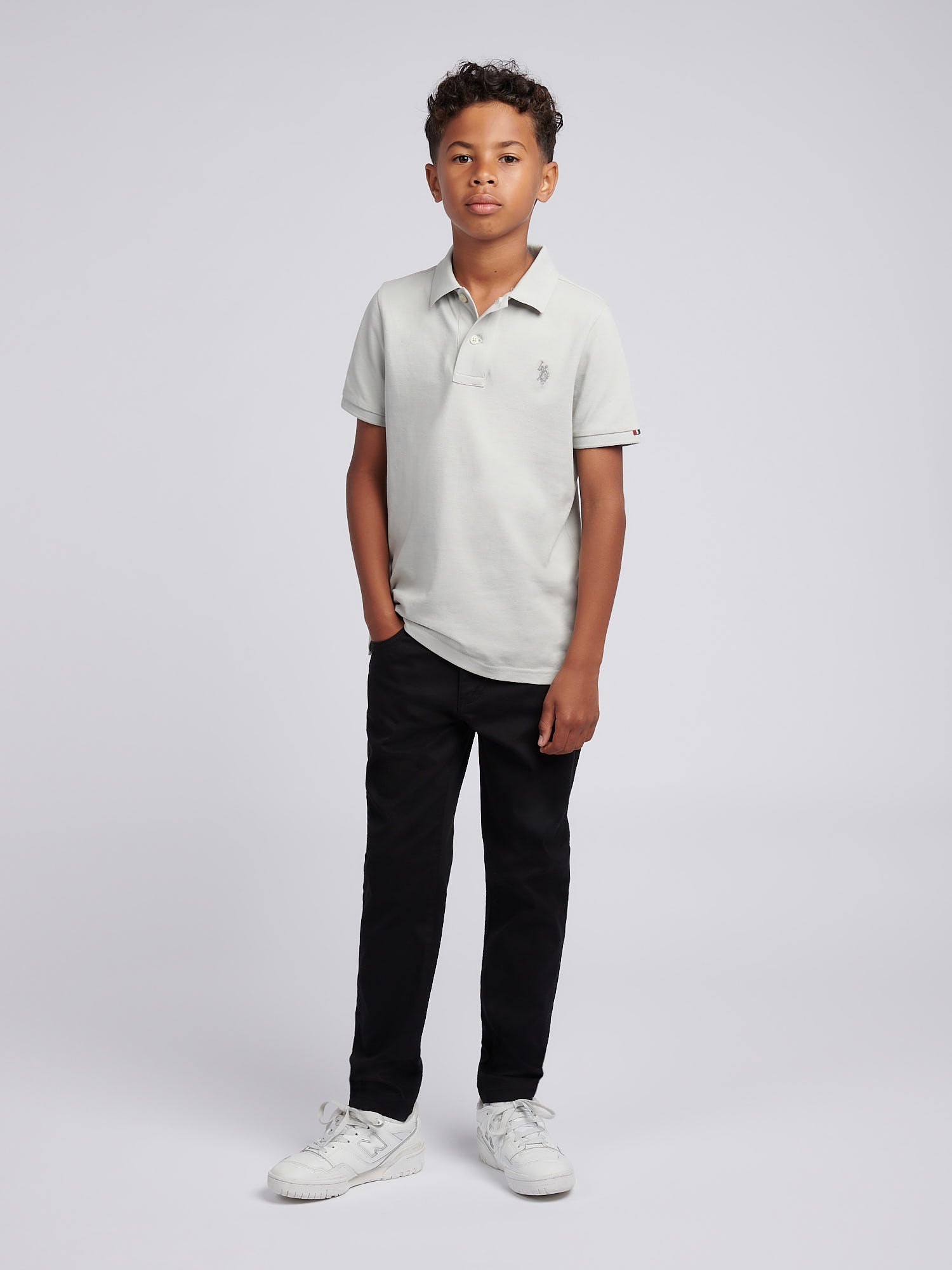 Combining refined texture with everyday practicality, the U.S. Polo Assn. Boys Bedford Cord 5 Pocket Trouser is a polished update on a wardrobe essential. Designed with comfort stretch and a classic fit, it’s the perfect choice for smarter days or weekend outings. Style with a button-down shirt and leather trainers for a neat, elevated look.
