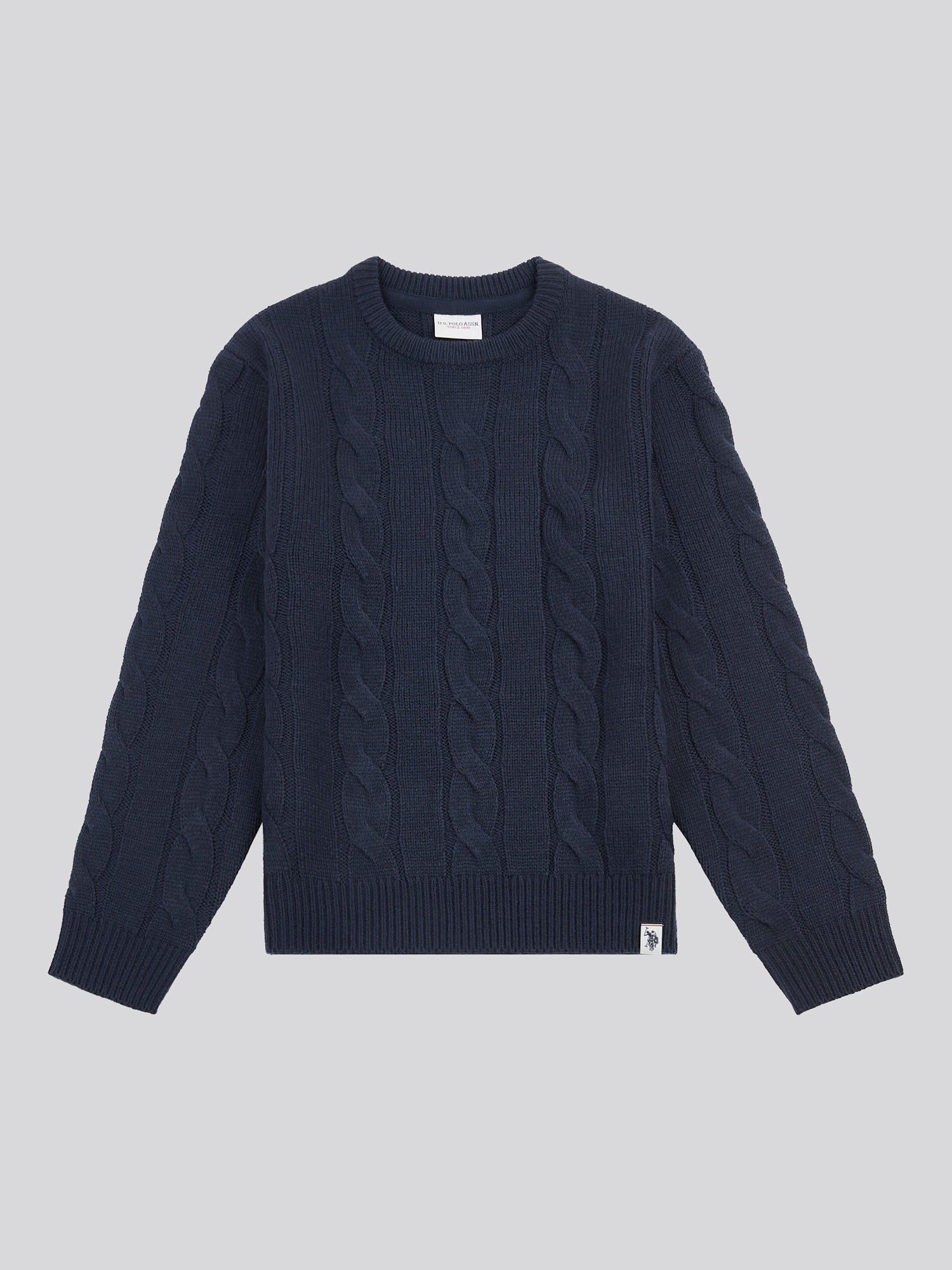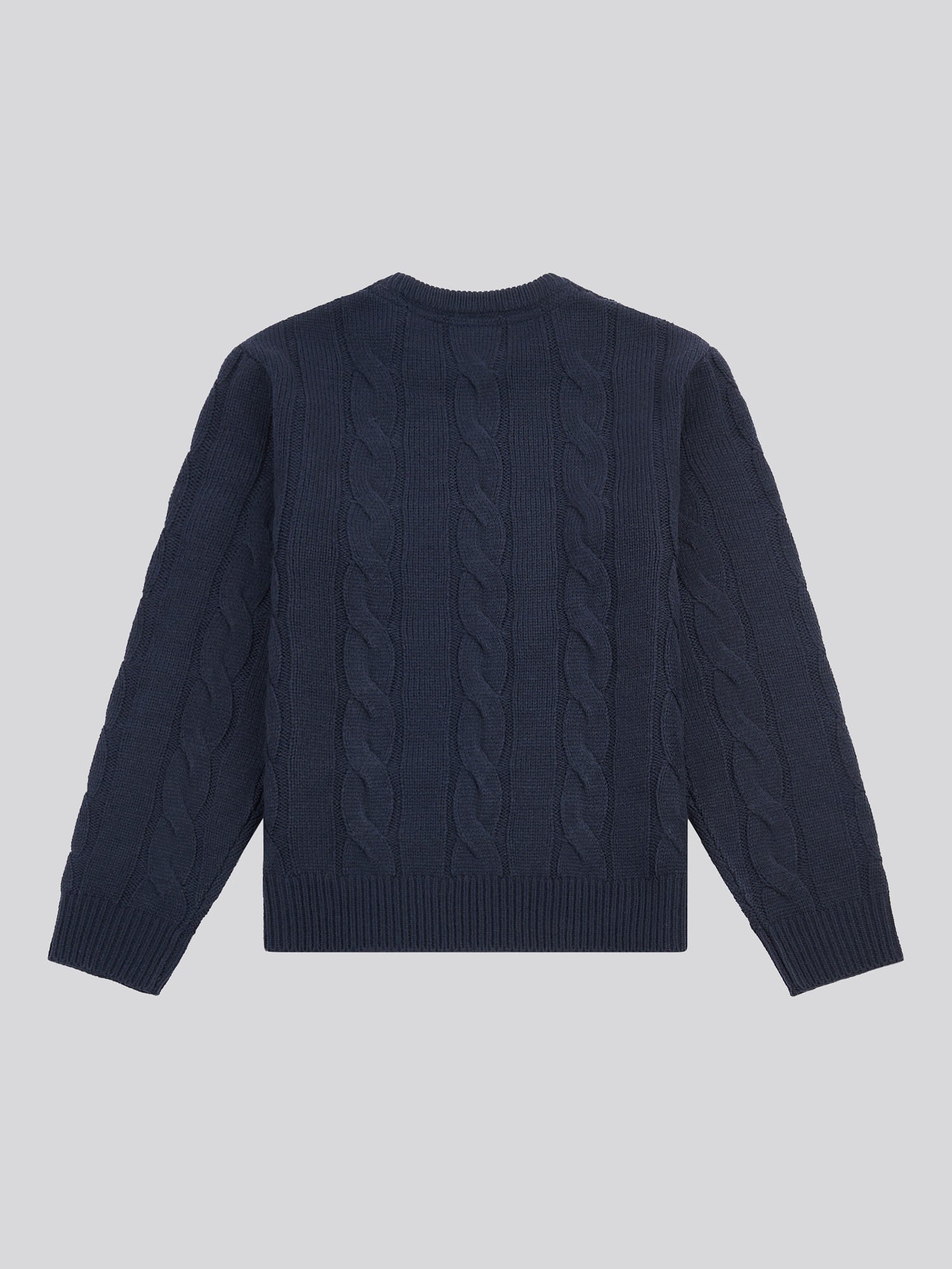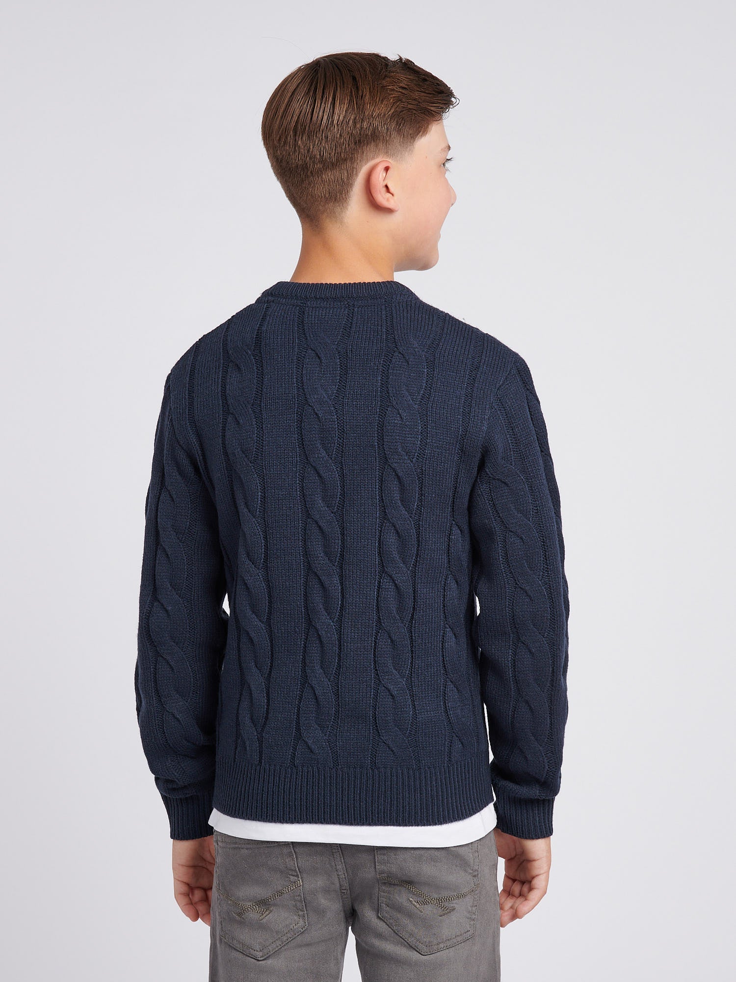 Boys Cable Knit Crew in Dark Sapphire Navy