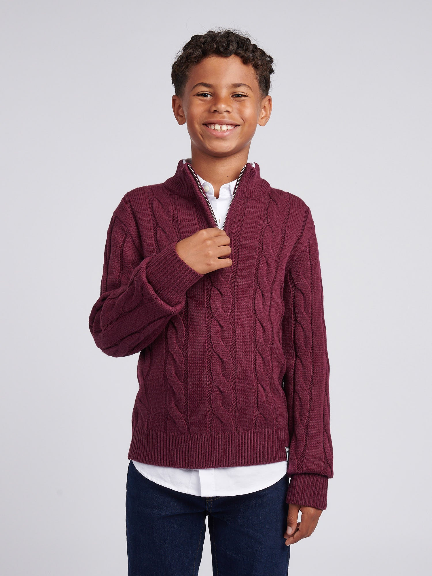 Boys Cable Knit Funnel in Grape Wine