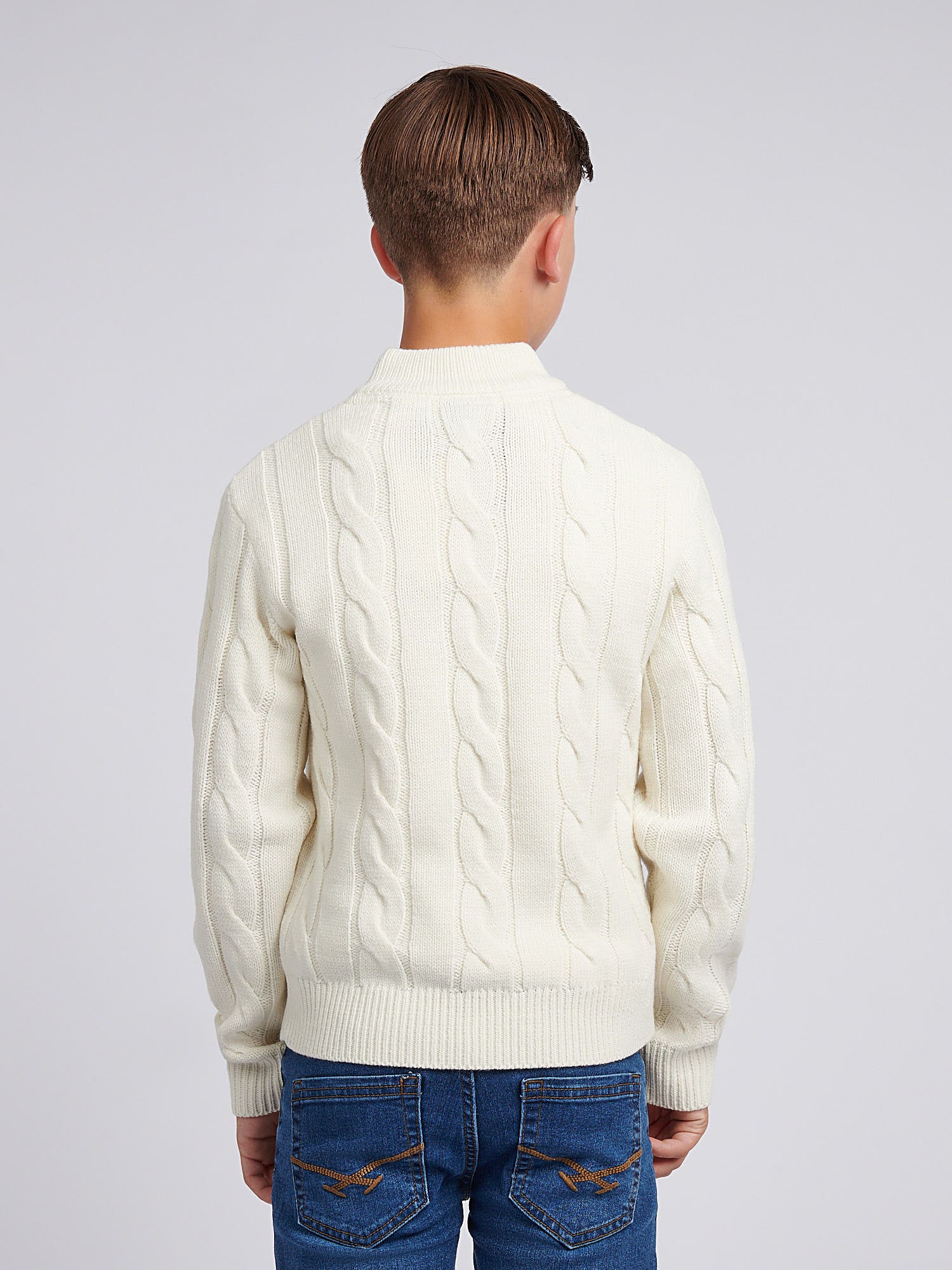 Boys Cable Knit Funnel in Whisper White