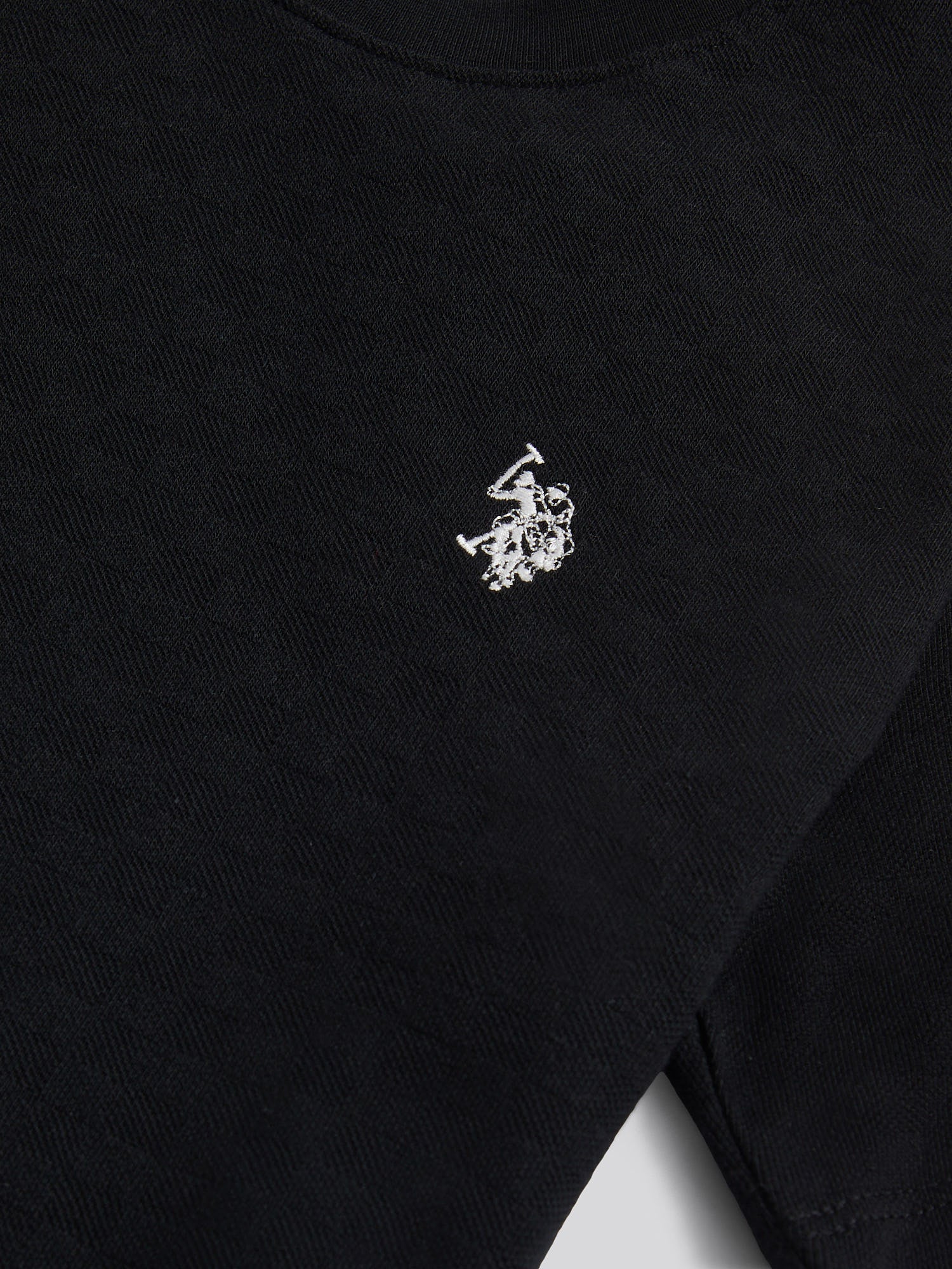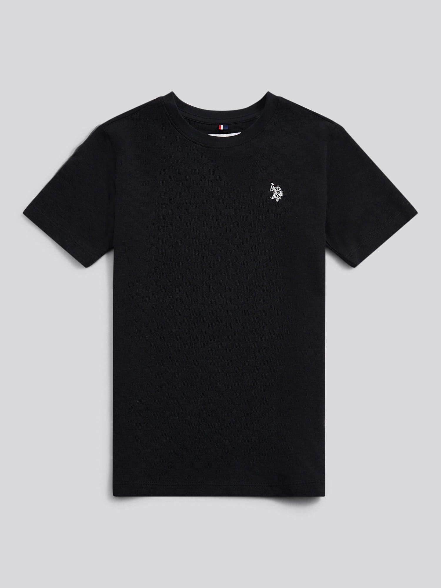 Combining timeless heritage with a tactile twist, the U.S. Polo Assn. Boys Check Texture T-Shirt brings understated detail to everyday style. Its subtly structured finish is elevated by signature embroidery and a clean neckline, making it perfect for pairing with jeans or layered under a hoodie on cooler days.