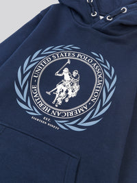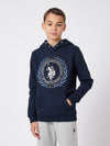 Boys Crest Graphic Hoodie in Dark Sapphire Navy