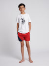 Add a splash of sporty heritage to his swimwear with these U.S. Polo Assn. Cut and Sew Swim Shorts. Designed for poolside adventures and seaside escapades, they combine timeless style with modern practicality. Pair them with a crisp white tee and sliders for a classic summer-ready look.