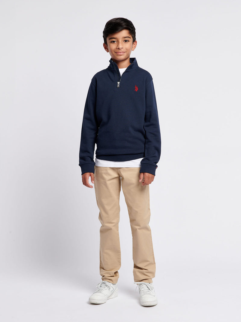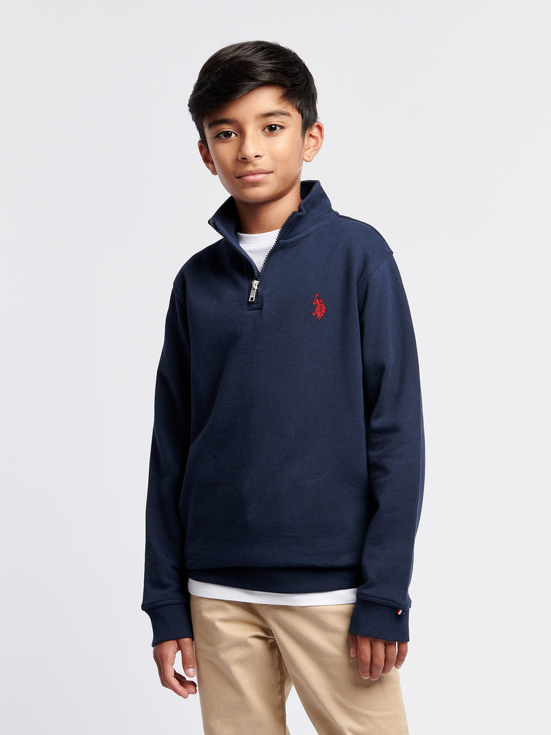 The U.S. Polo Assn. Boys Double Horsemen ¼ Zip delivers heritage style with comfort, making it perfect for layering on cooler days. Pair it with jeans or joggers for a relaxed yet polished look.