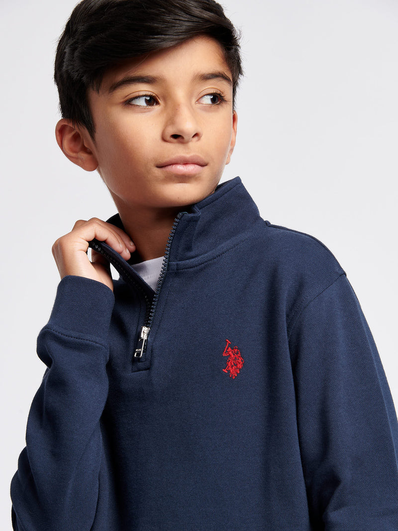 Boys Double Horsemen 1/4 Zip in Dark Sapphire Navy / Haute Red DHM