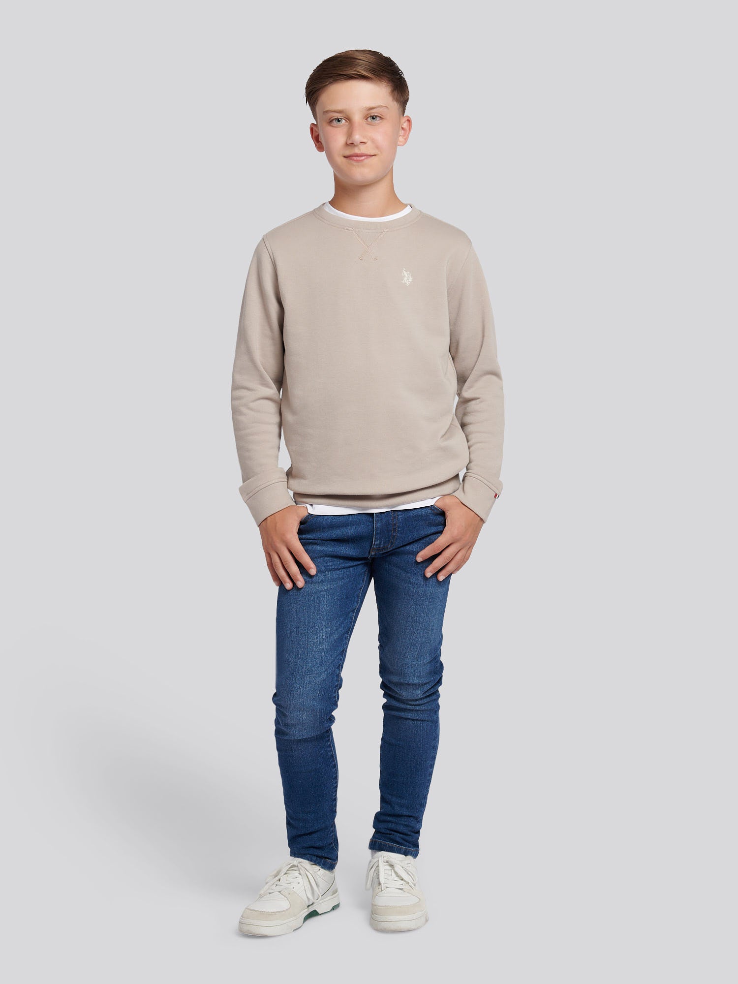 Bringing classic sporting heritage into the everyday, the U.S. Polo Assn. Boys Double Horsemen Crew is a laid-back essential with an elevated edge. Featuring the iconic double horsemen embroidery and stripe detailing, it captures the spirit of the game with a modern twist. Style it with denim or joggers for effortless off-duty dressing.
