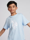Boys Double Horsemen Graphic T-Shirt in Chambray Blue