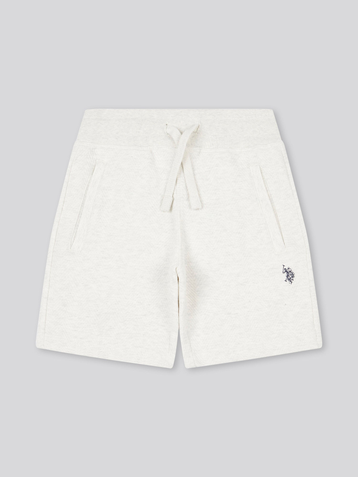 Boys Double Horsemen Herringbone Sweat Short in Light Grey Marl
