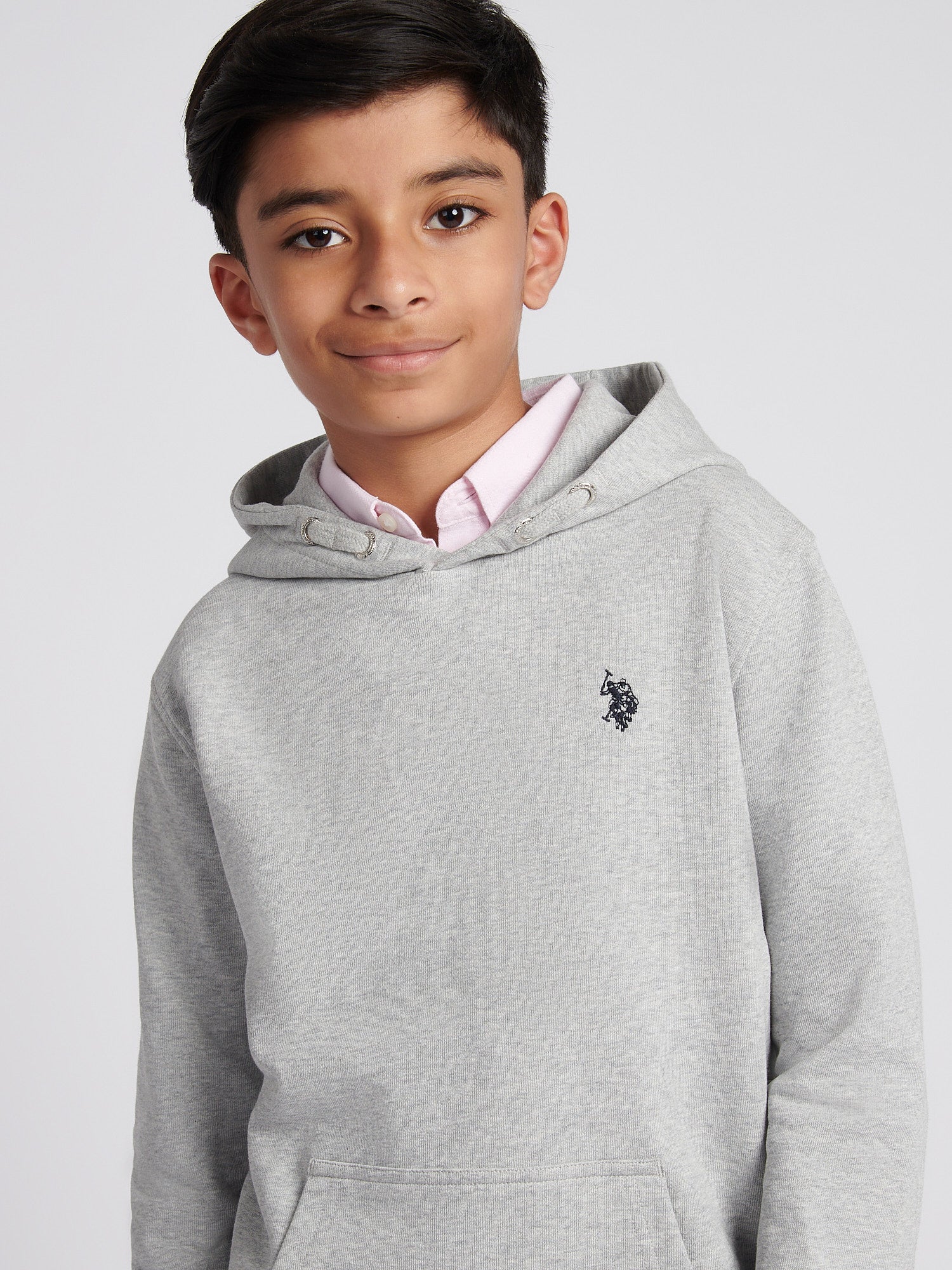 Boys Double Horsemen Hoodie in Mid Grey Marl