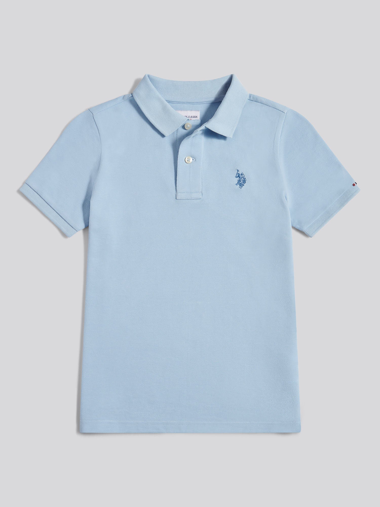 Boys Double Horsemen Polo Shirt in Chambray Blue