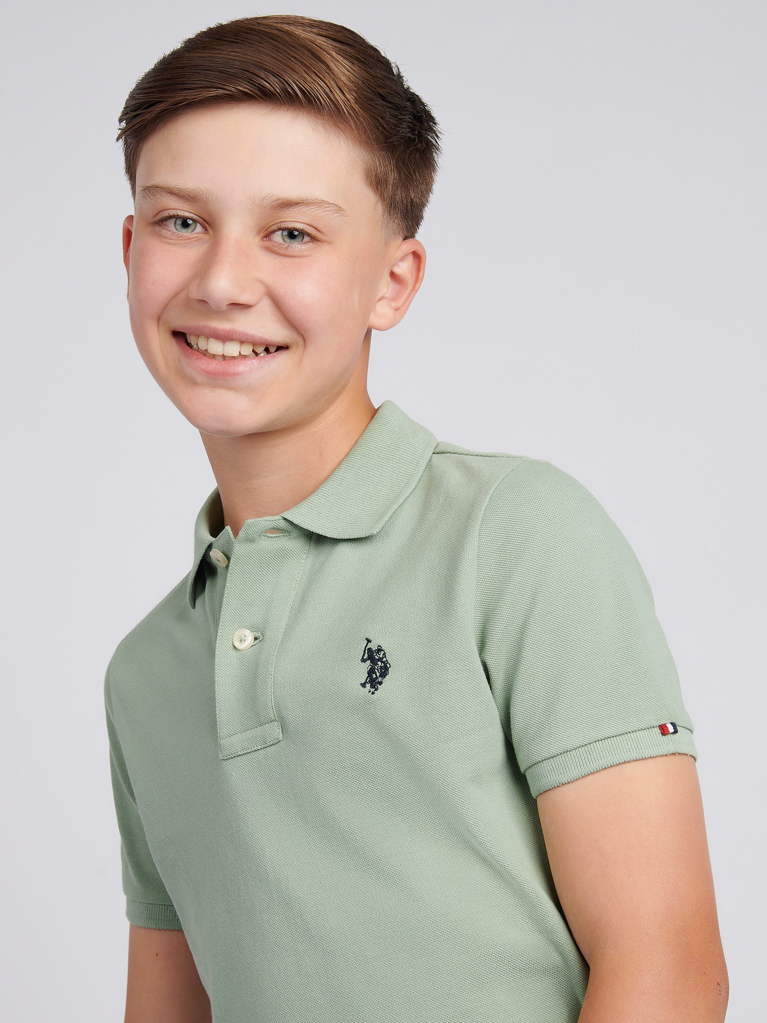 Boys Double Horsemen Polo Shirt in Iceberg Green