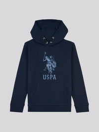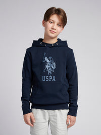 Boys Double Horsemen Statement Hoodie in Dark Sapphire Navy