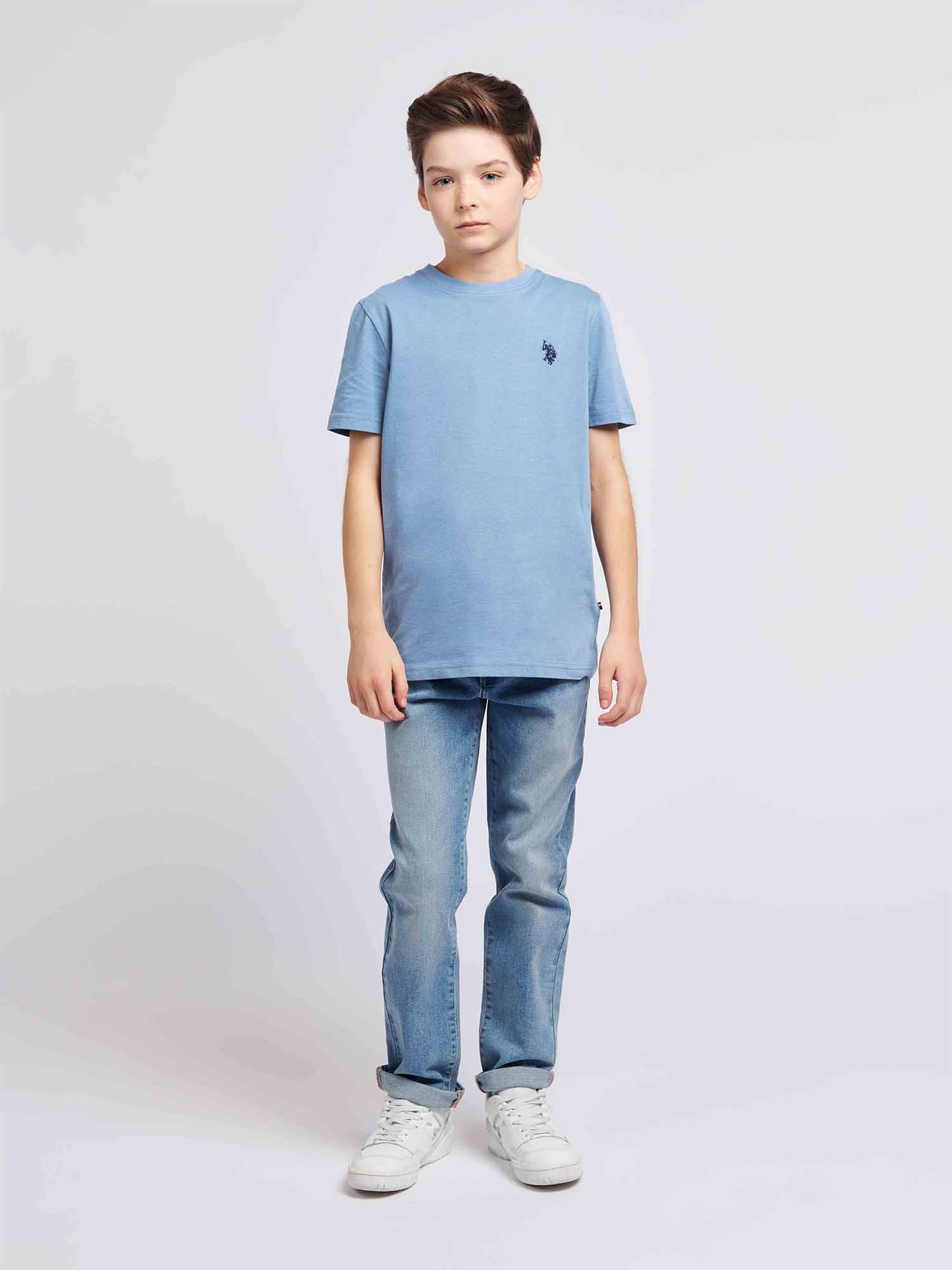 Boys Double Horsemen T- Shirt in Chambray Blue