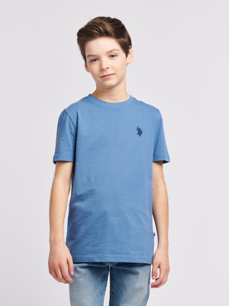 A wardrobe essential, the U.S. Polo Assn. Boys Double Horsemen T-Shirt is a comfortable and breathable everyday basic crafted in 100% cotton.