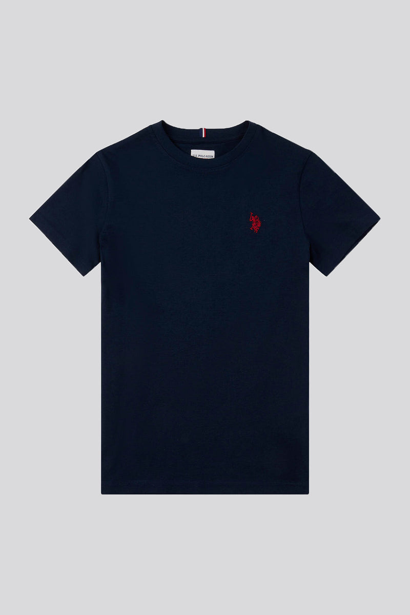 Boys Double Horsemen T- Shirt in Dark Sapphire Navy / Haute Red DHM