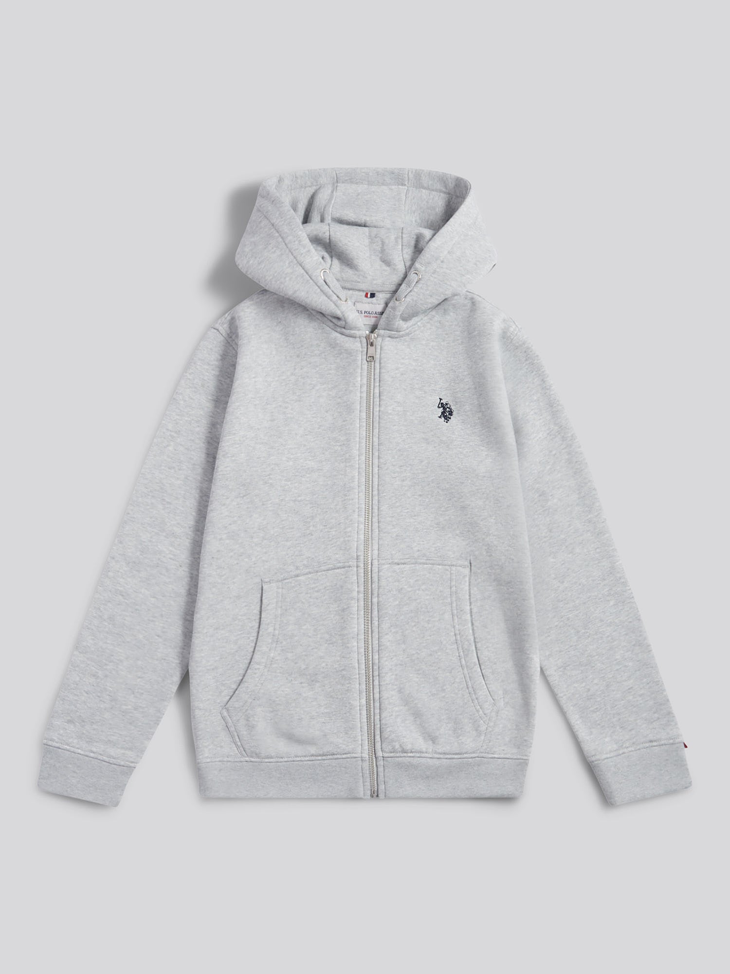 Boys Double Horsemen Zip Hoodie in Mid Grey Marl