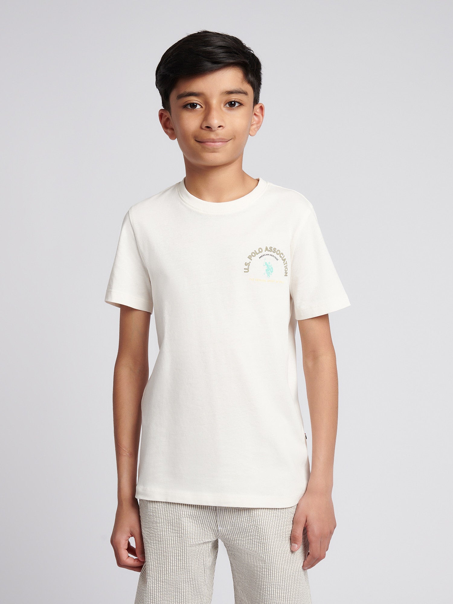 Boys Front Back Print Graphic T-Shirt in Whisper White