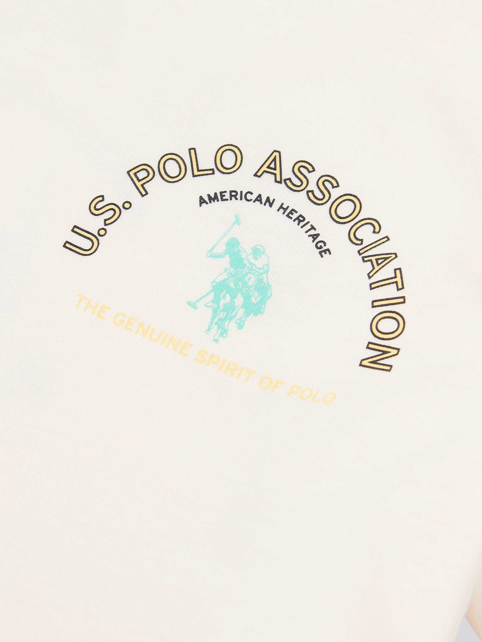 The U.S. Polo Assn. Boys Front Back Print Graphic T-Shirt offers a bold, spirited look, perfect for young fans of the sport. With distinct front and back graphic prints, this tee adds a dynamic touch to casual outfits. Pair it with jeans or shorts for a laid-back style that stands out.