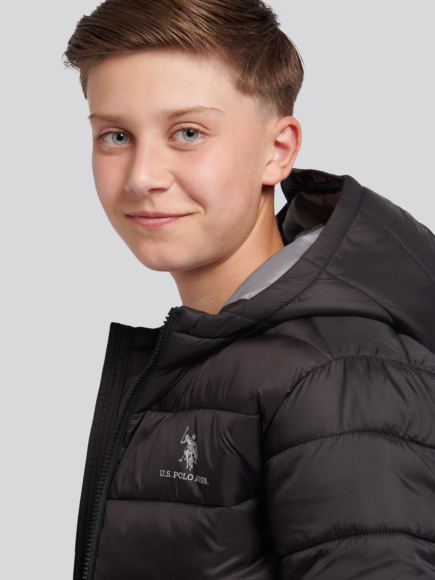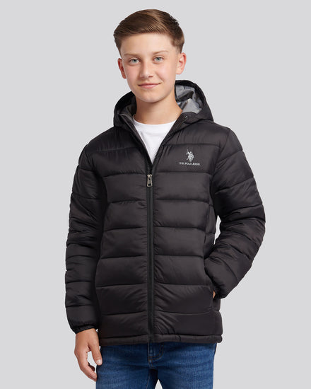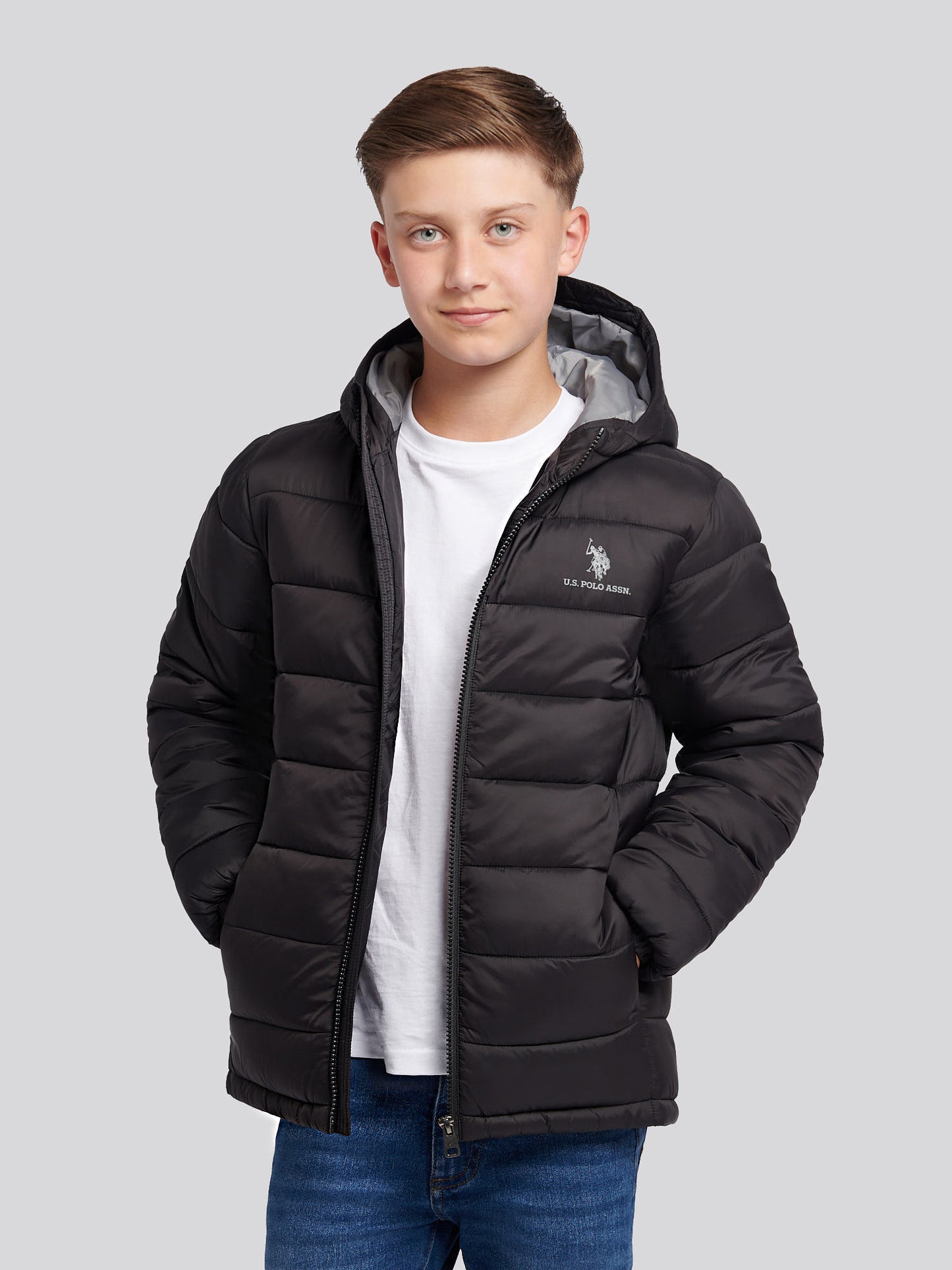 Crafted for outdoor adventures and everyday wear alike, the U.S. Polo Assn. Boys Hooded Quilted Jacket offers reliable warmth with a refined finish. From frosty school runs to countryside escapes, this piece delivers durability and style in equal measure. Layer over a sweatshirt and jeans for a practical cold-weather look with a heritage edge.