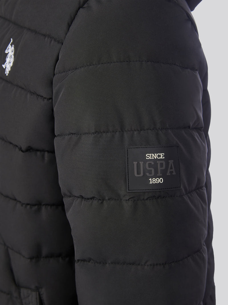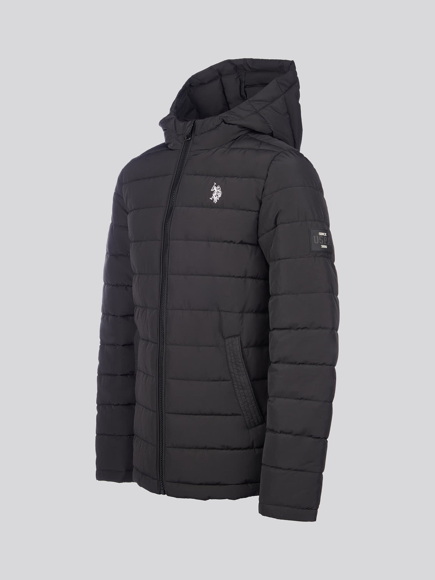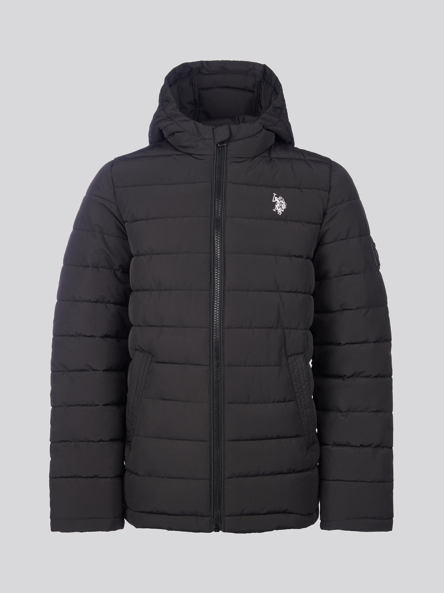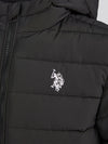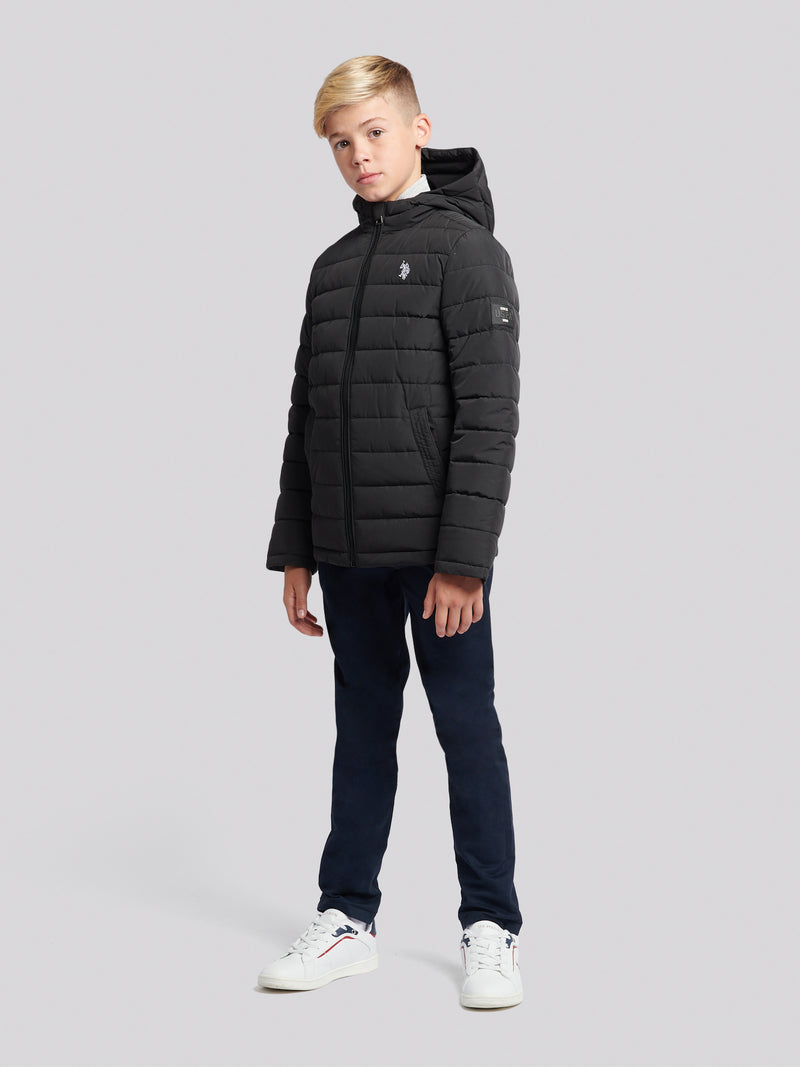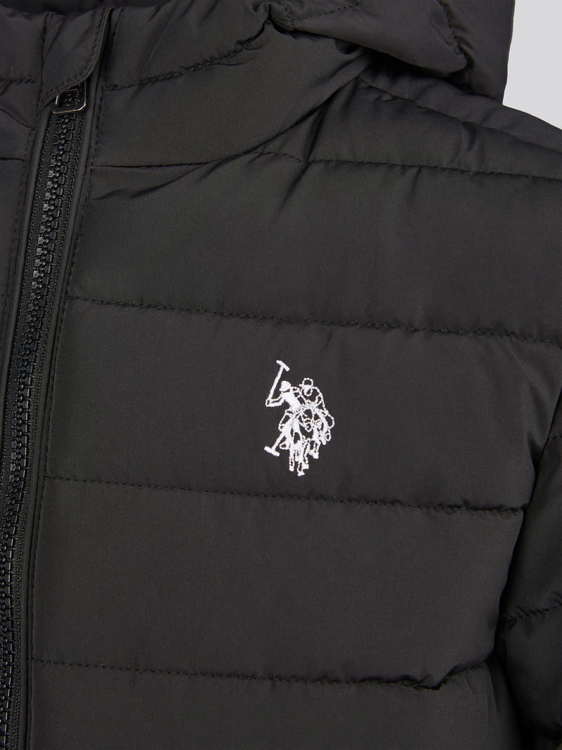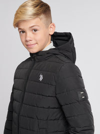 Boys Lightweight Quilt Hooded Puffer Jacket in Black