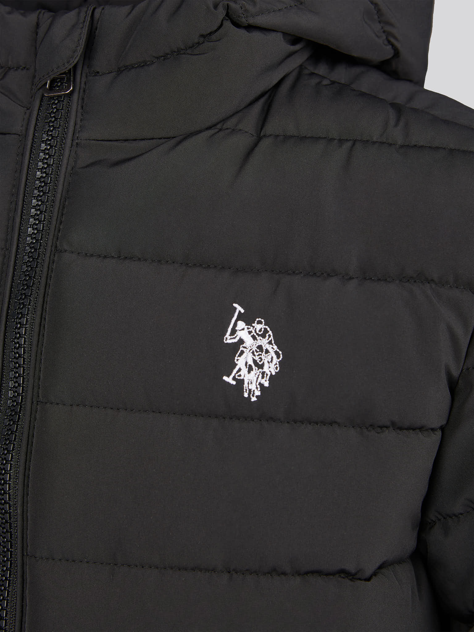 Equip your young adventurer with the U.S. Polo Assn. Boys Lightweight Quilt Hooded Puffer Jacket, a masterful blend of tradition and modernity designed to withstand the elements with ease. Pair this jacket with classic jeans and sturdy boots for an effortlessly stylish and practical outfit, perfect for outdoor adventures and casual outings.