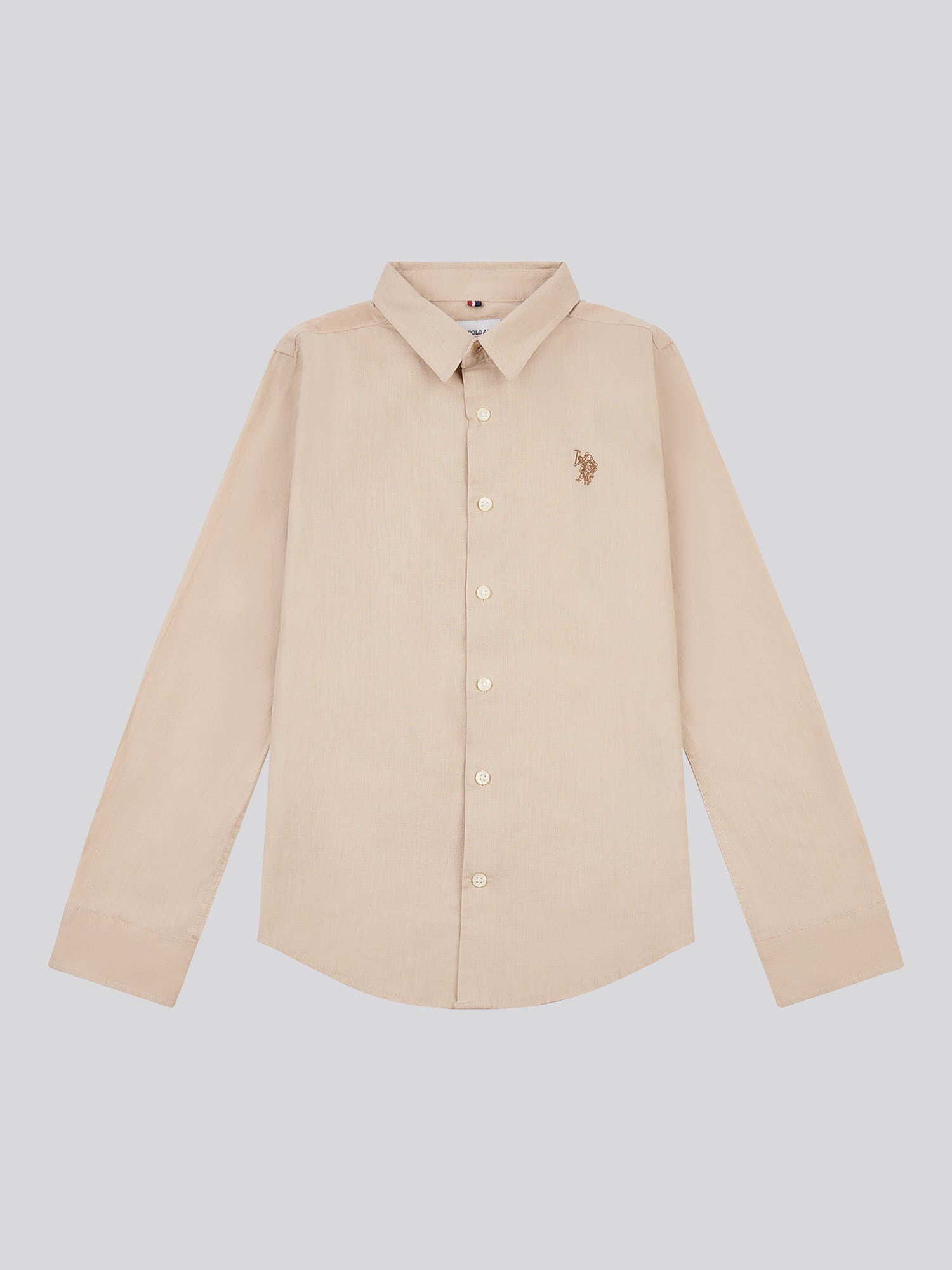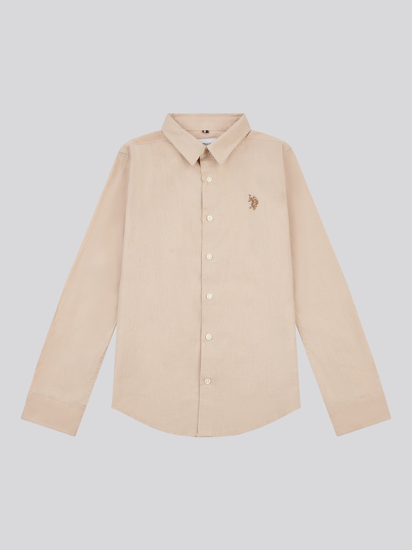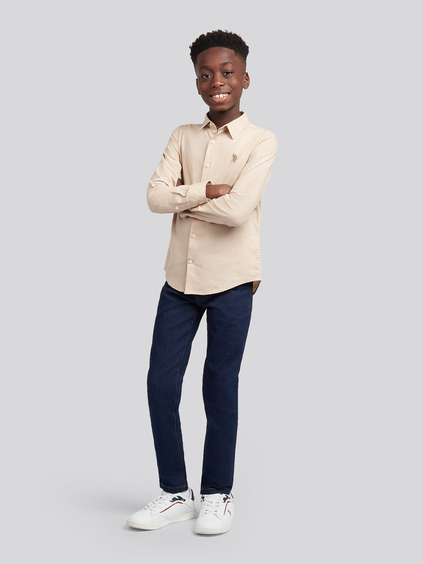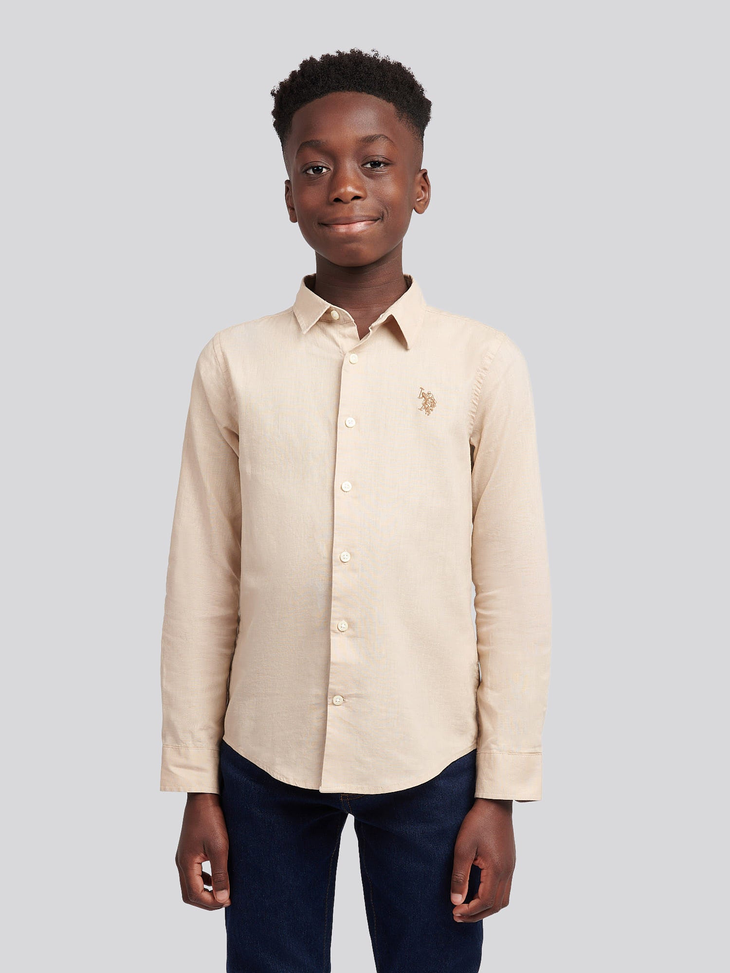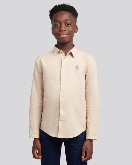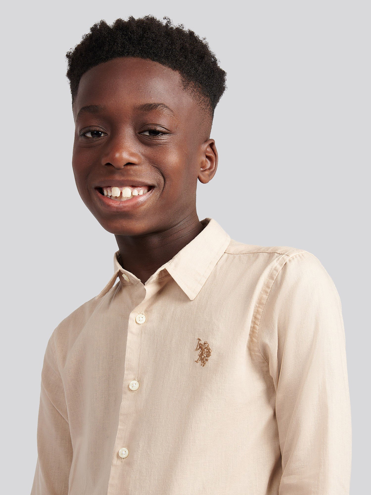Embracing seasonal styles, this Boys Linen Blend Shirt from U.S. Polo Assn. is made for holidays and smart-casual outdoor dress codes.