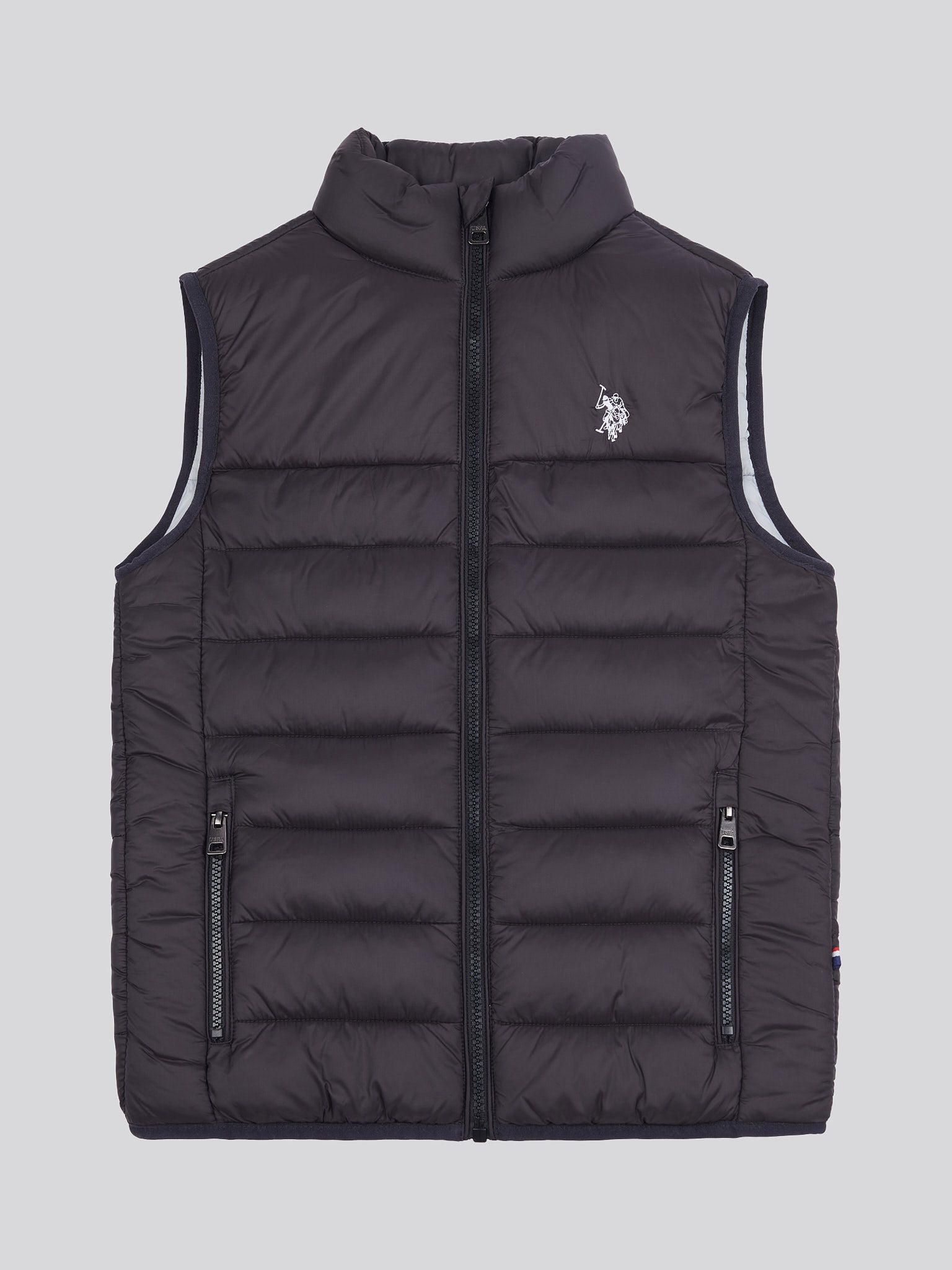 Boys Panelled Quilted Gilet in Black Bright White DHM