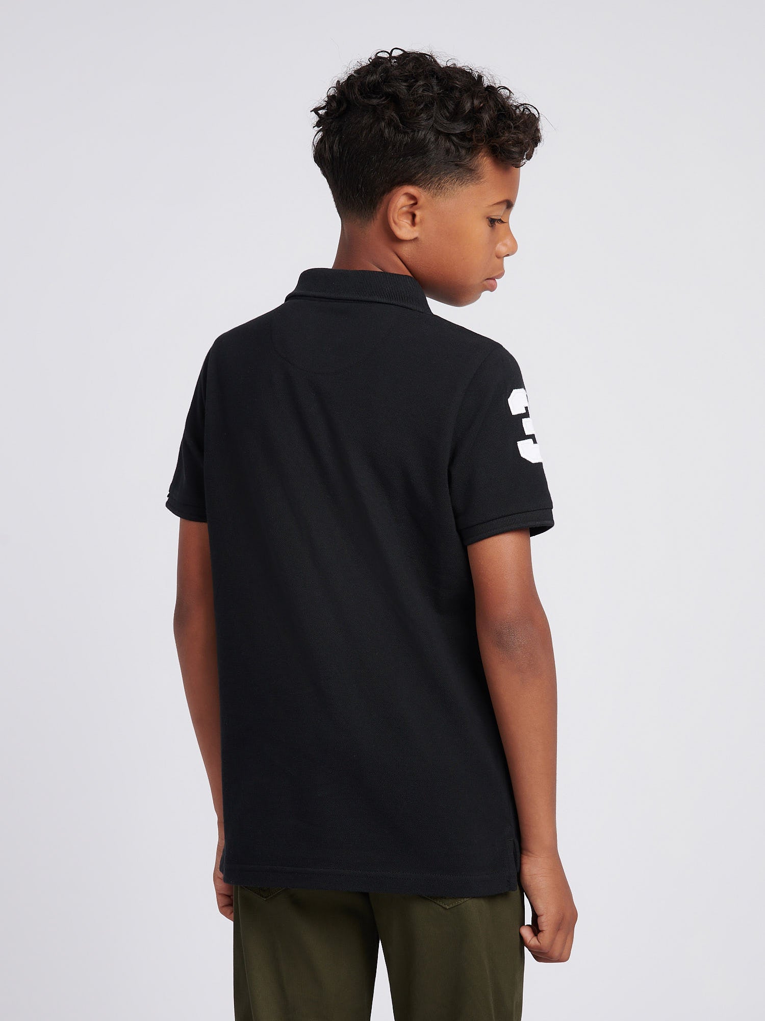 Boys Player 3 Polo Shirt in Black Bright White DHM
