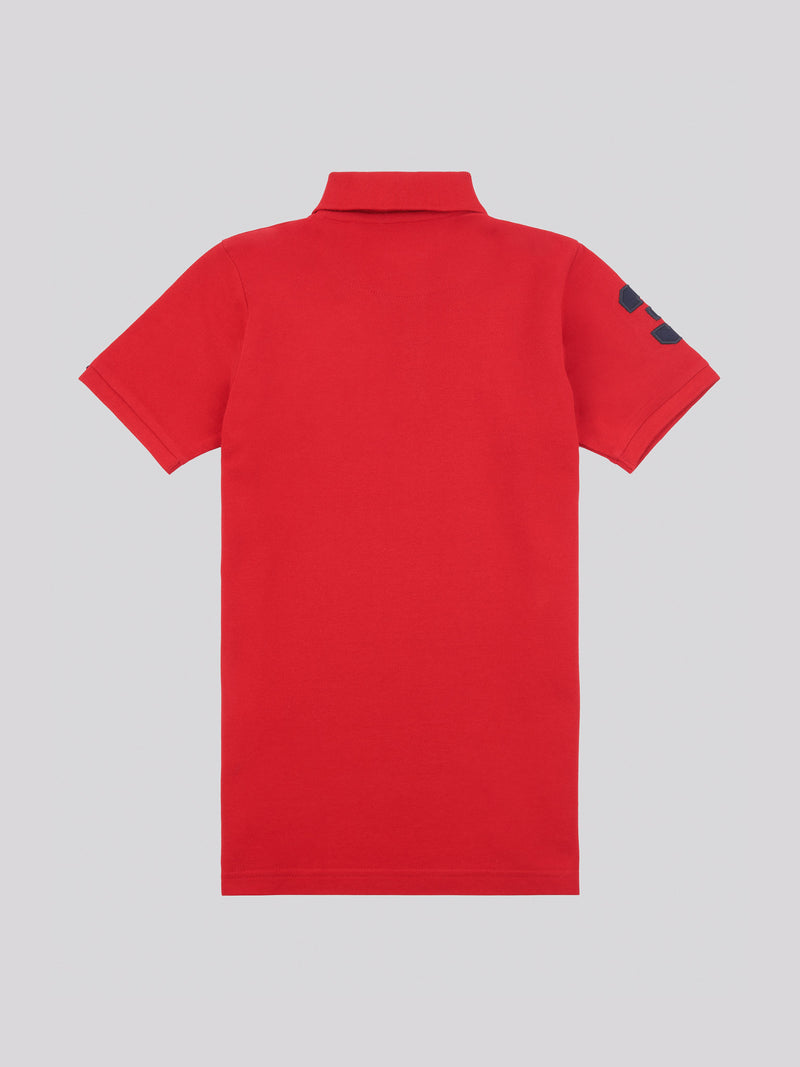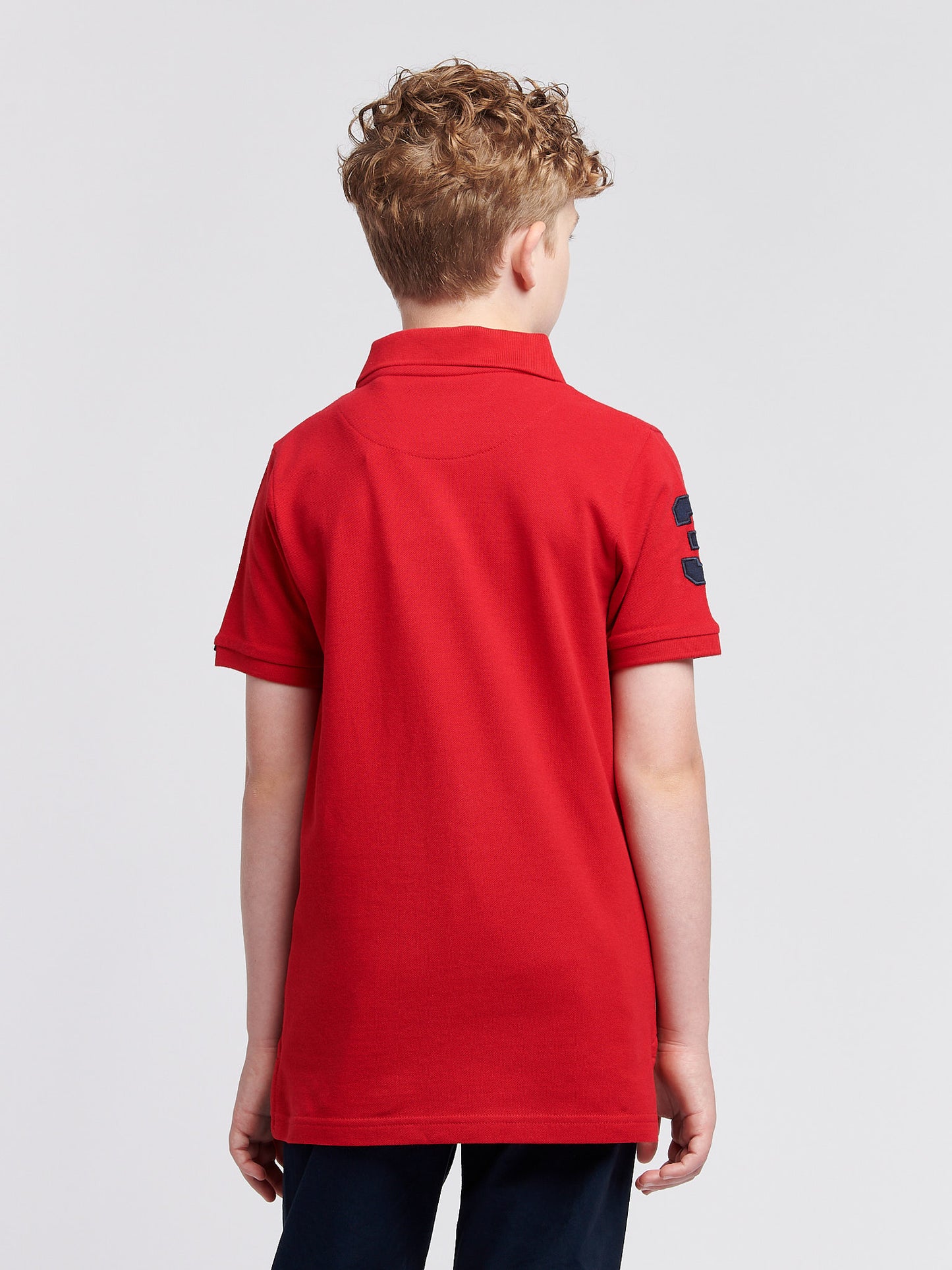 Boys Player 3 Polo Shirt in Dark Sapphire Navy / Haute Red DHM