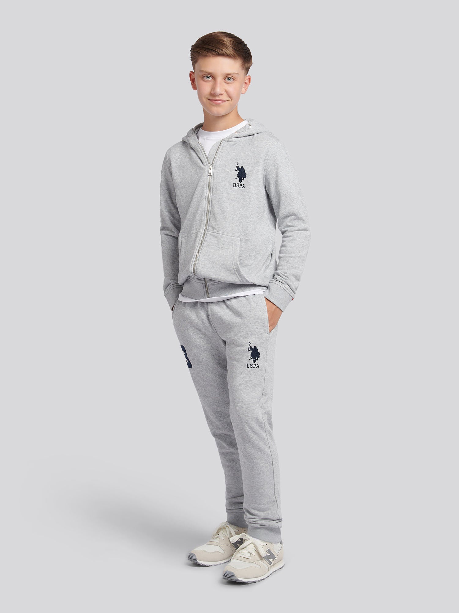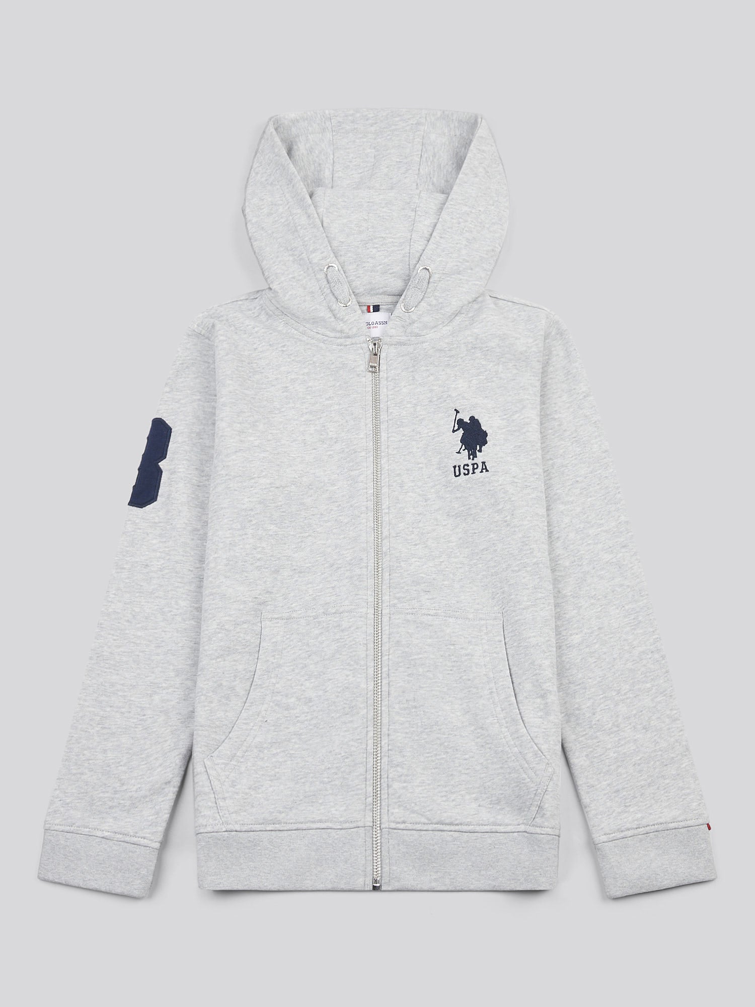 Boys Player 3 Zip Hoodie in Mid Grey Marl