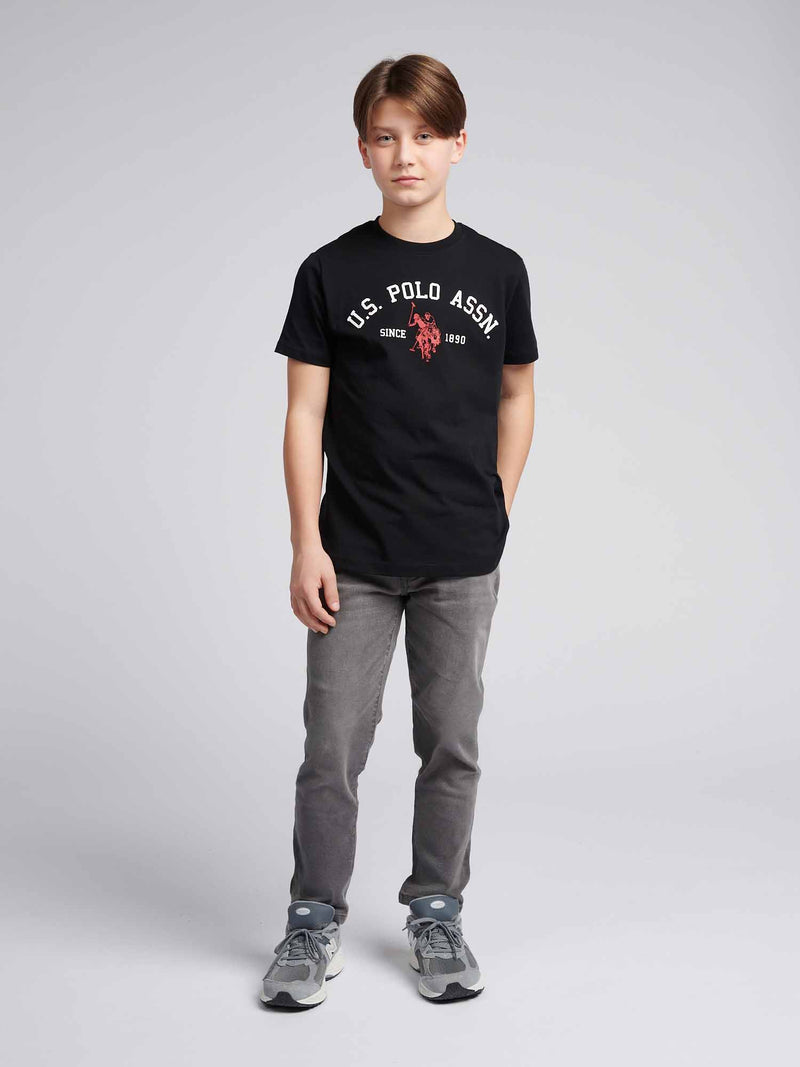 Boys Signature Arch Print T-Shirt in Black